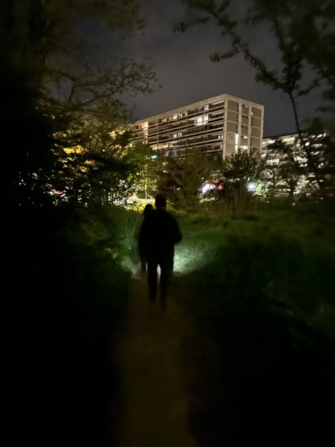 We had to use flashlights to wend our way home.