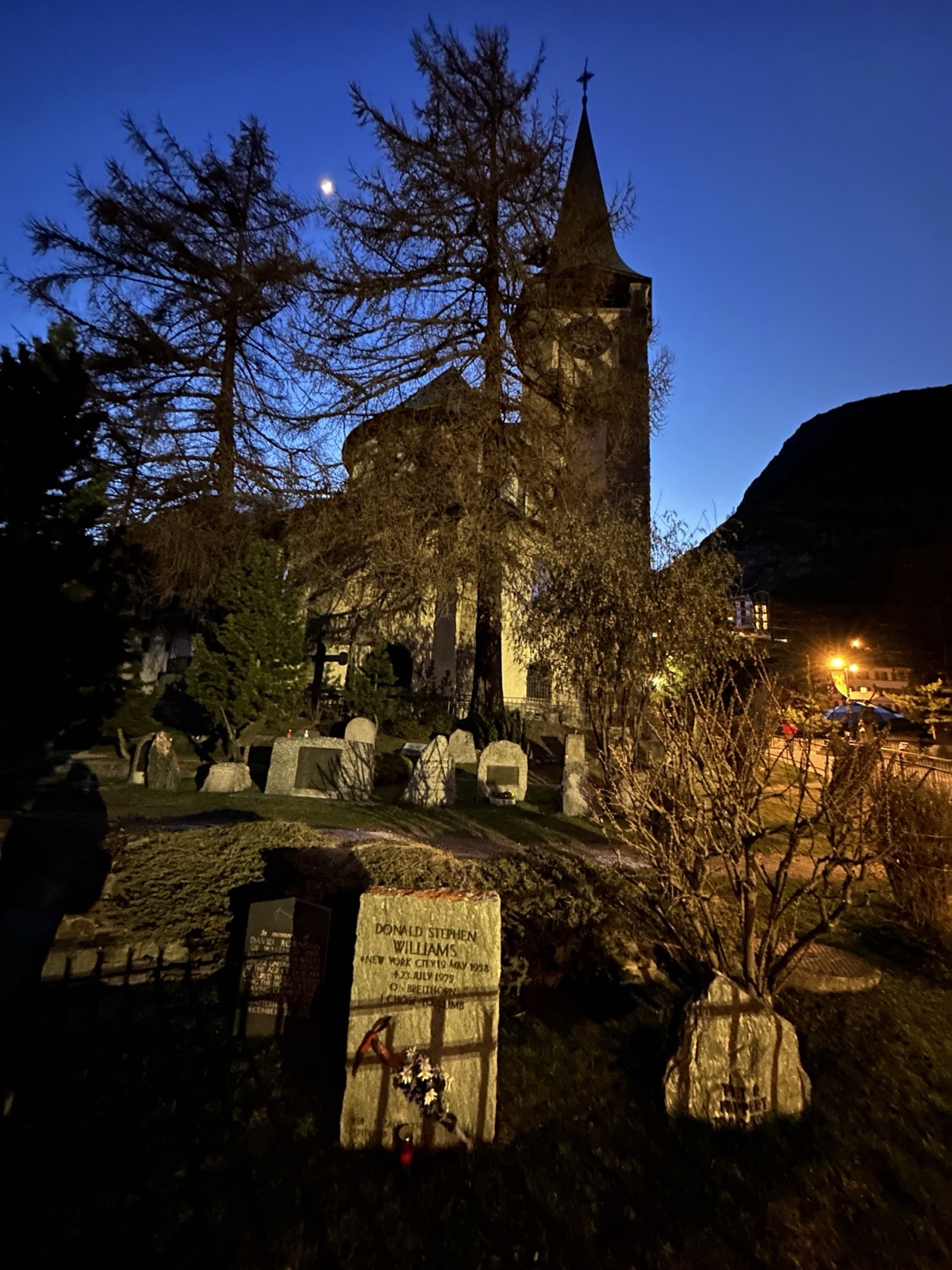 The church with the graveyard looked a bit creepy at night.