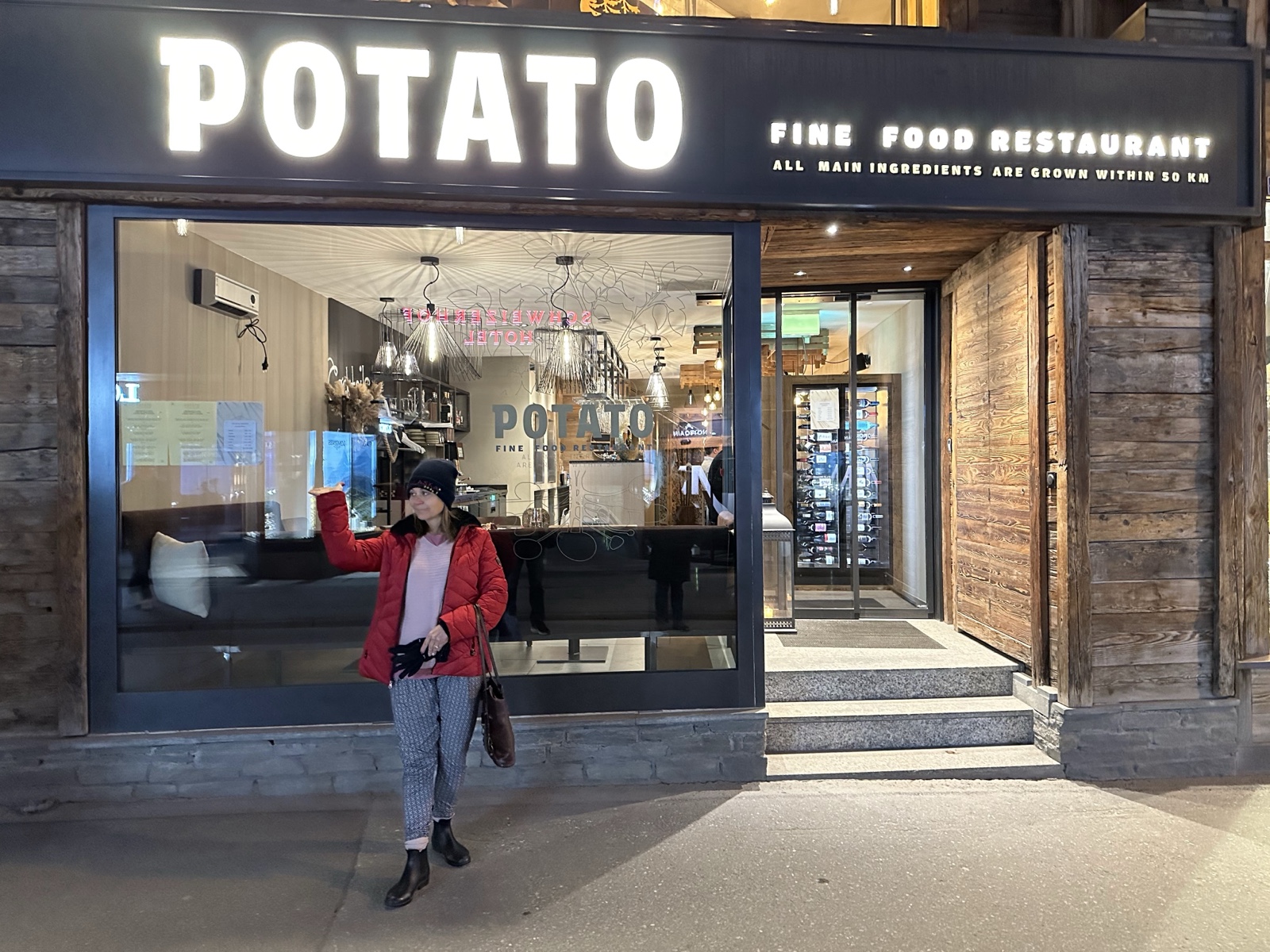 I had my favorite Idahoan pose in front of the "Potato Fine Food Restaurant".