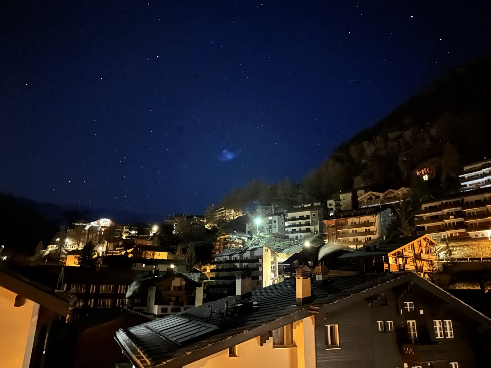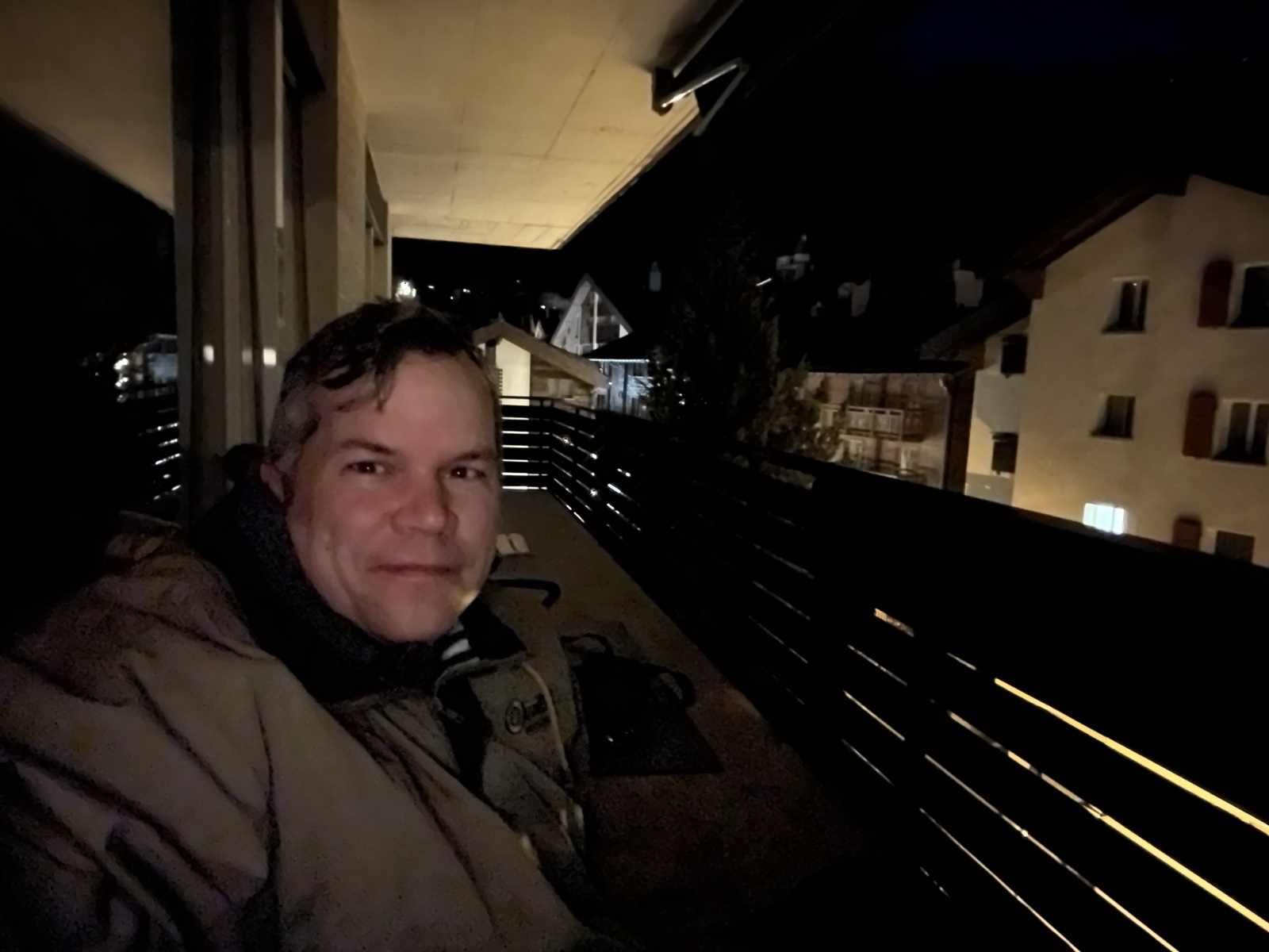It had been a long day. In fact, it was so long that it started the day before, and 8 hours earlier than that to boot. So we fell right asleep. However, I still woke up at 5 a.m. due to jet lag, so I bundled up and sat on the back balcony and enjoyed the pretty town and the bright stars.
