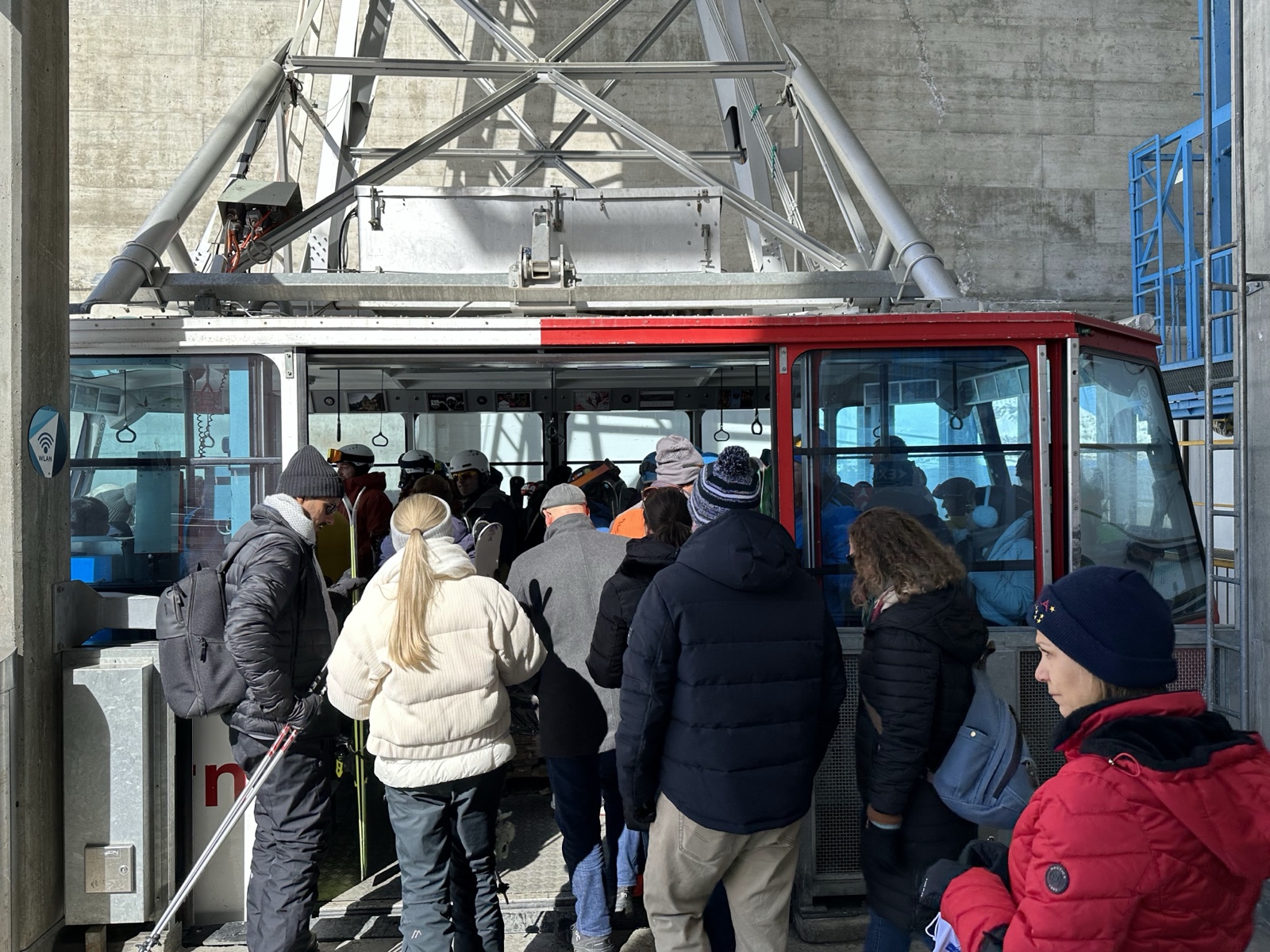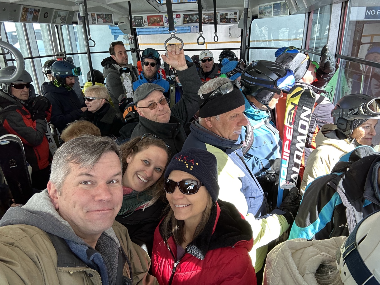 The last leg of the trip up the mountain was in a big gondola packed with people.
