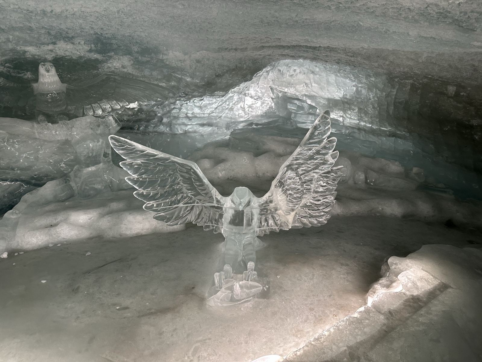There were also ice sculptures carved with chainsaws and chisels from flat layers of glacier ice.