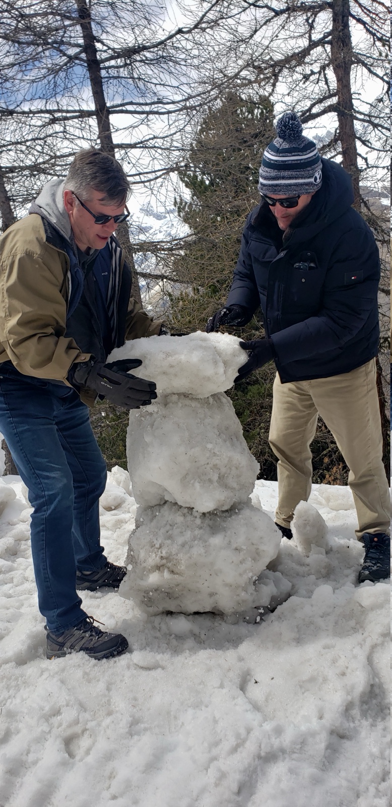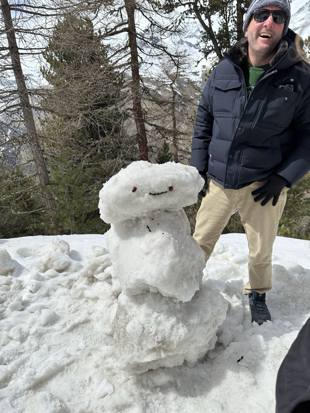 As we walked along the snowy road to the local resort, Kelly and I threw together a snowman.