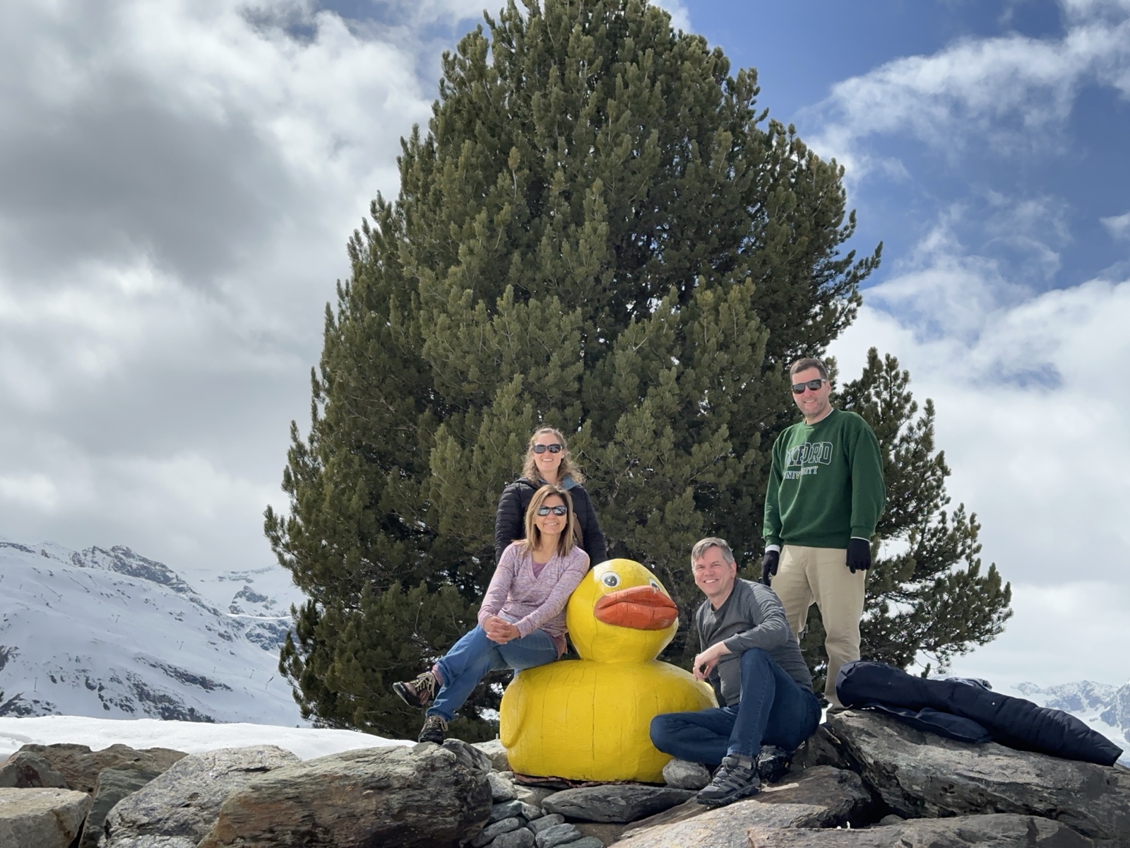 We saw a big duck there, so we took a picture in honor of my brother Joe, who so loves the Oregon Ducks. (The Matterhorn is perfectly blocked by that tree).