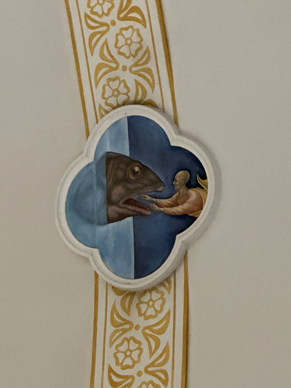 Another painting on the ceiling appears to be telling the story of Jonah.