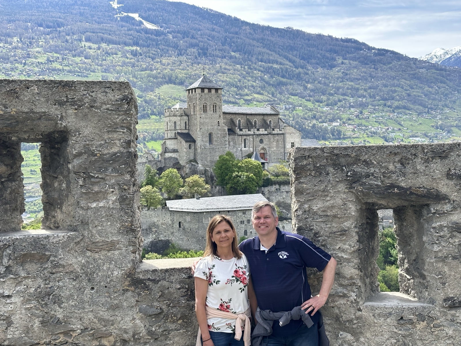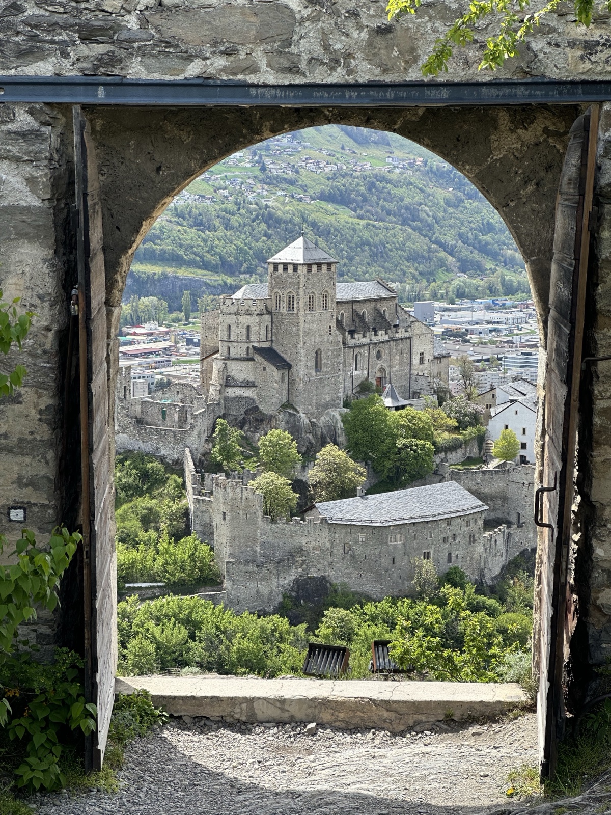 From partway up the hike, we had a good view of the neighboring structure, which is a catholic cathedral called the Basilique de Valère.