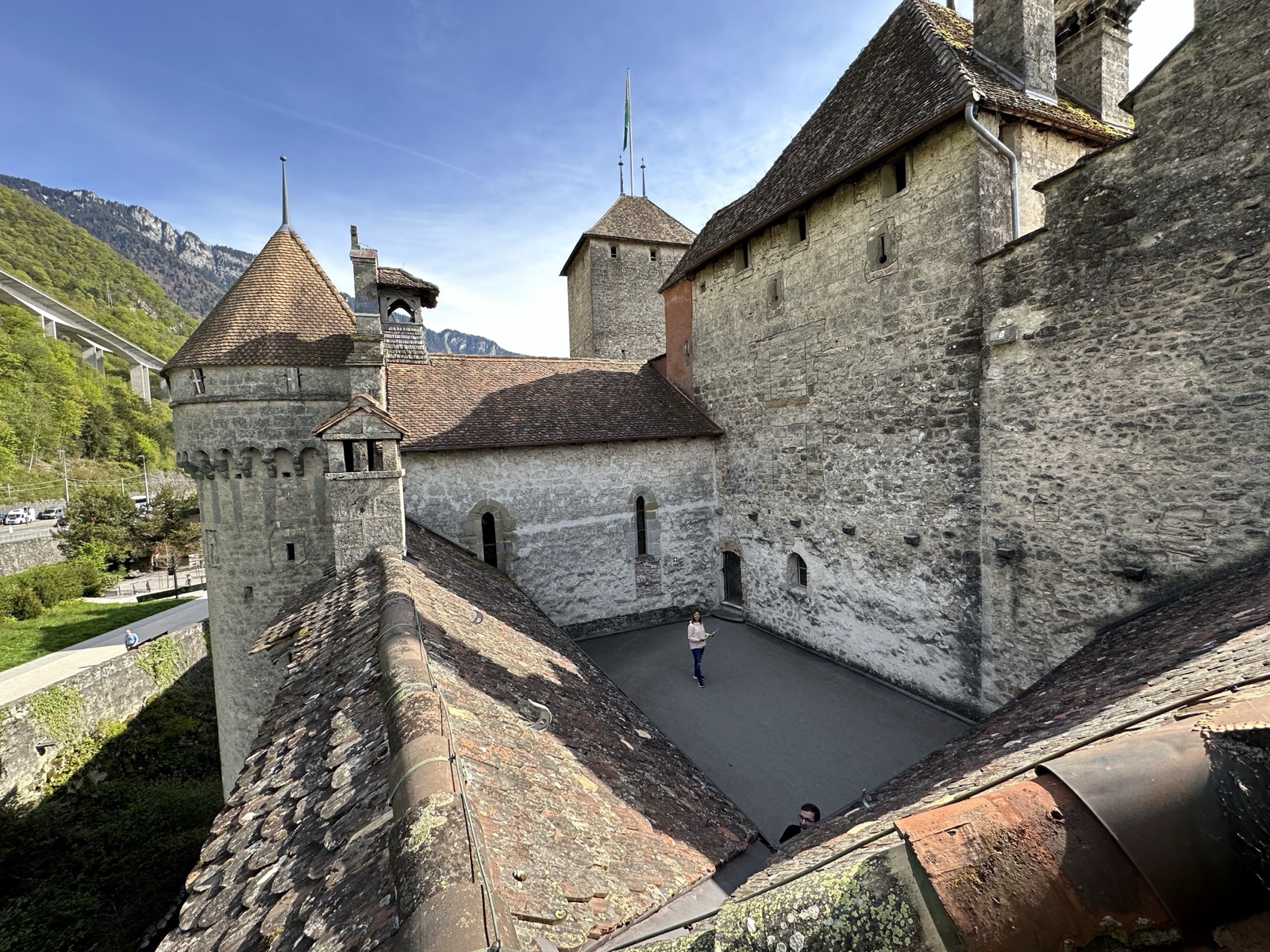 Here is a view from one of the turrets. You can see Linette in the courtyard below.