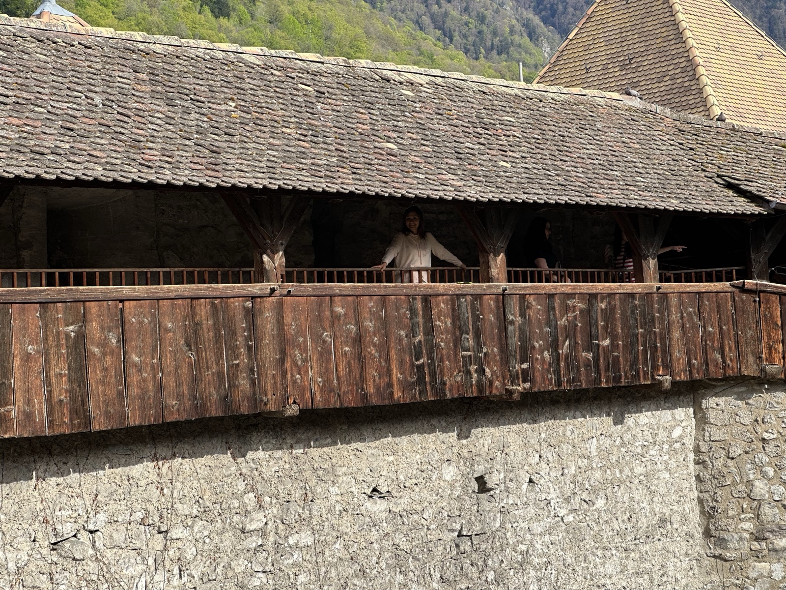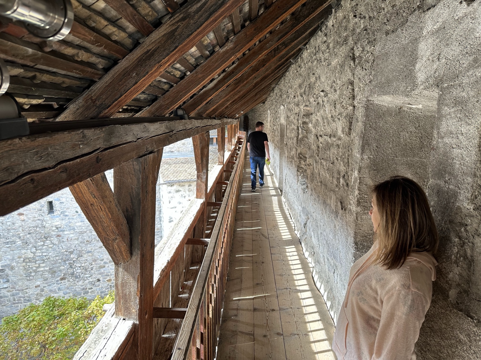 There were wooden walkways high along the inside of the castle walls.