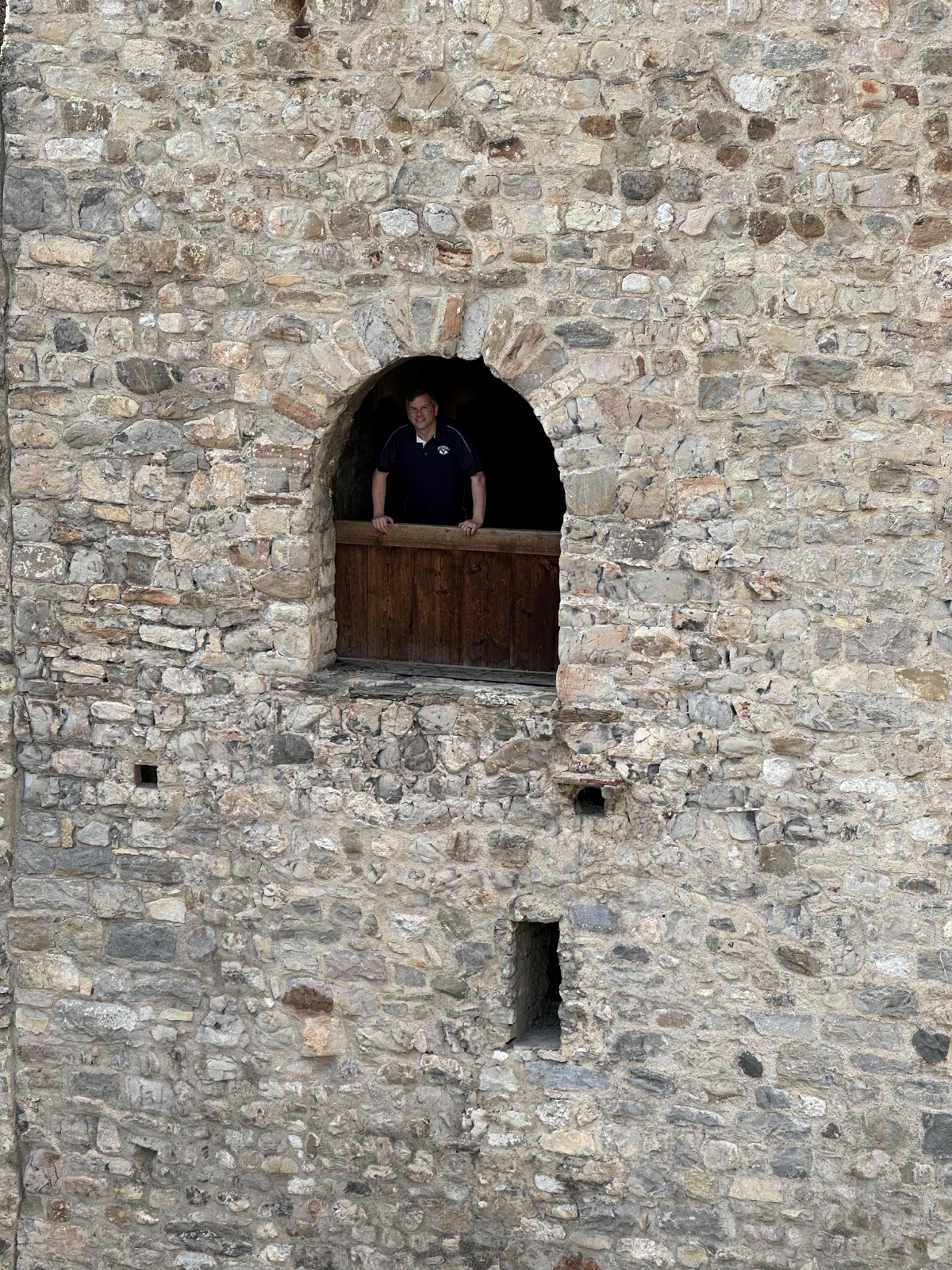 And Linette took a picture from there, of me inside the "keep", which is a tall, secure tower meant for final defense if the outer walls were breached.