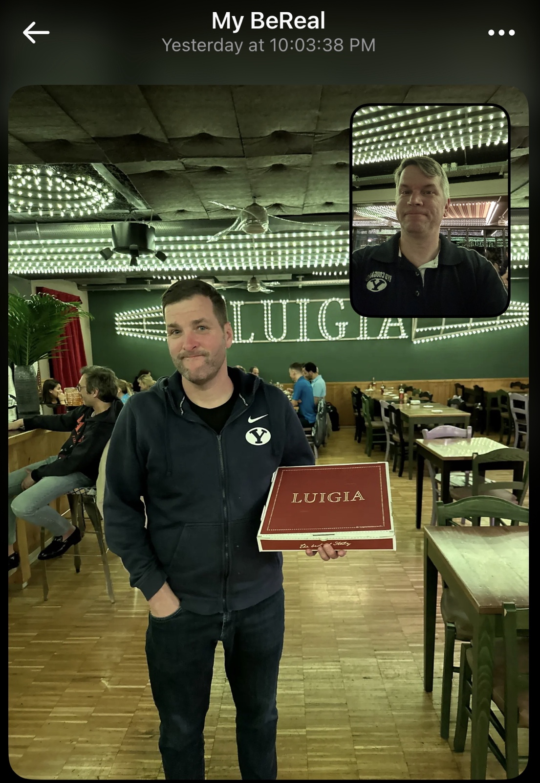 My BeReal went off as we were paying for the pizza. I went up and told the lady "Table 49, if you please" in French, and understood when she told me the total, so that was fun. I hadn't really learned any French until this year, so I'm still quite the beginner.