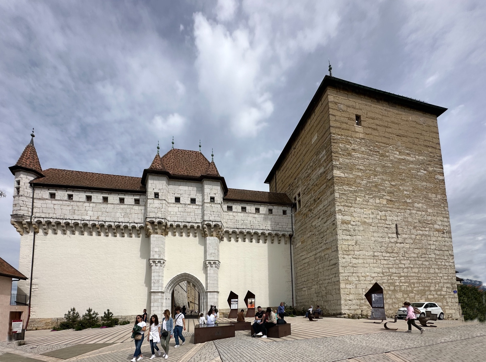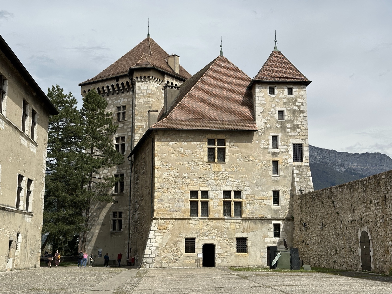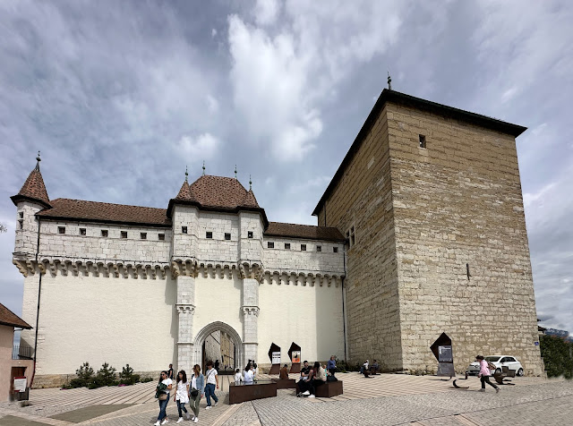 Here is the main courtyard when you walk through the gates. The castle was built between the 12th and 16th centuries, and was the residence of the Counts of Geneva and the Dukes of Genevois-Nemours. It suffered from several fires and was abandoned in the 17th century, and then the town acquired it in 1953 and restored it and turned it into a museum.