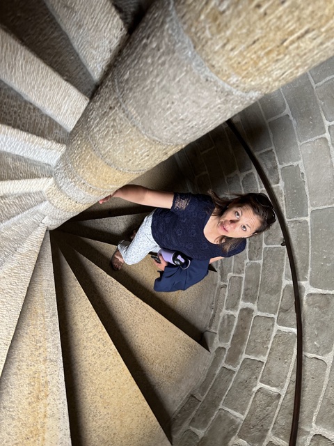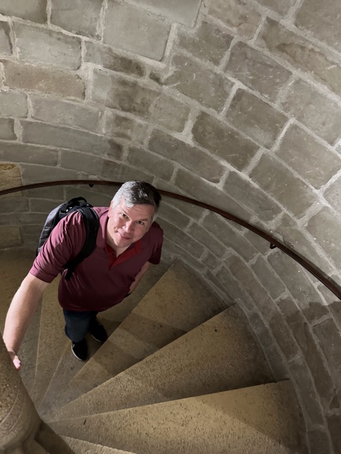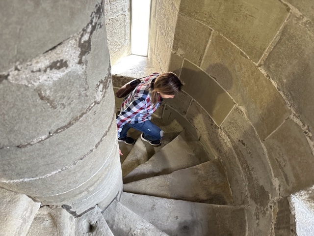 There was a tall spiral staircase that went up. There are apparently 153 steps, and I believe it.
