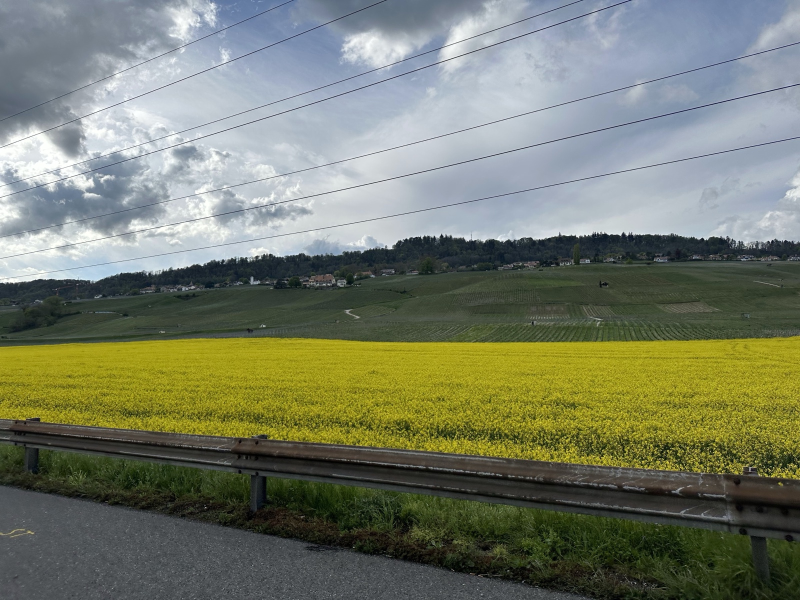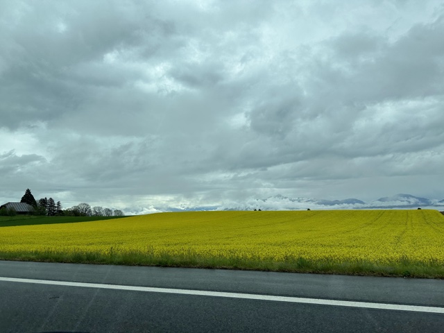 Along the way, we saw some more of those yellow fields I loved so much (which were a bit more subdued on a cloudy day).