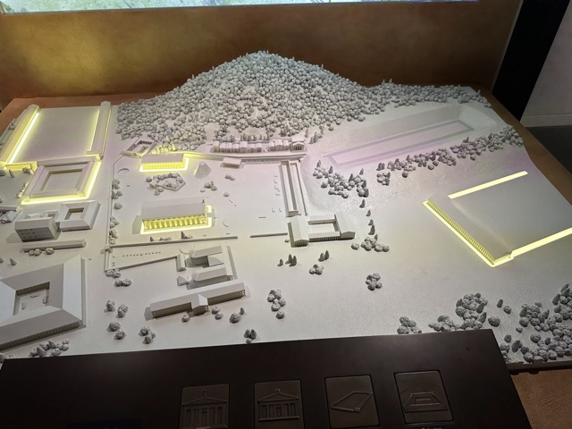 This model showed some of the original buildings used in the ancient Olympics, according to archeological evidence.