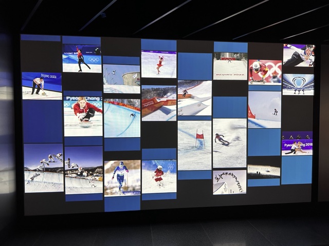 There was a fun video screen that showed lots of winter Olympics events at once.