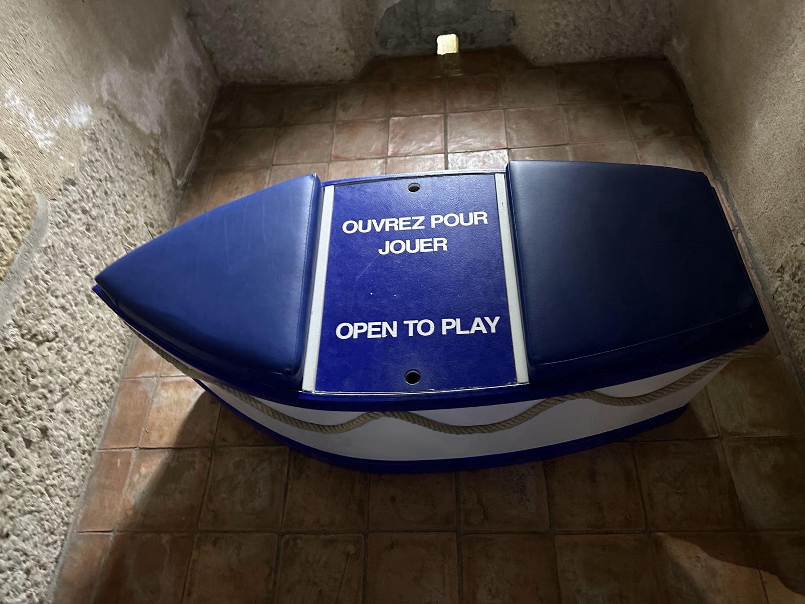 There was a little boat-shaped bench there that said "Open to play."