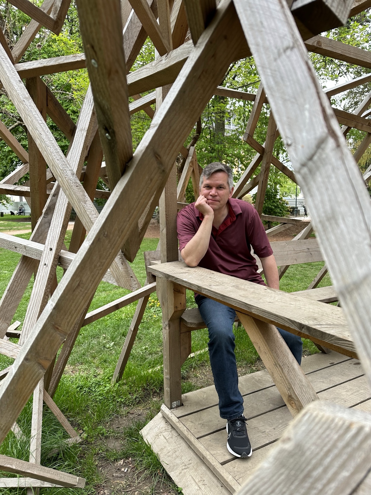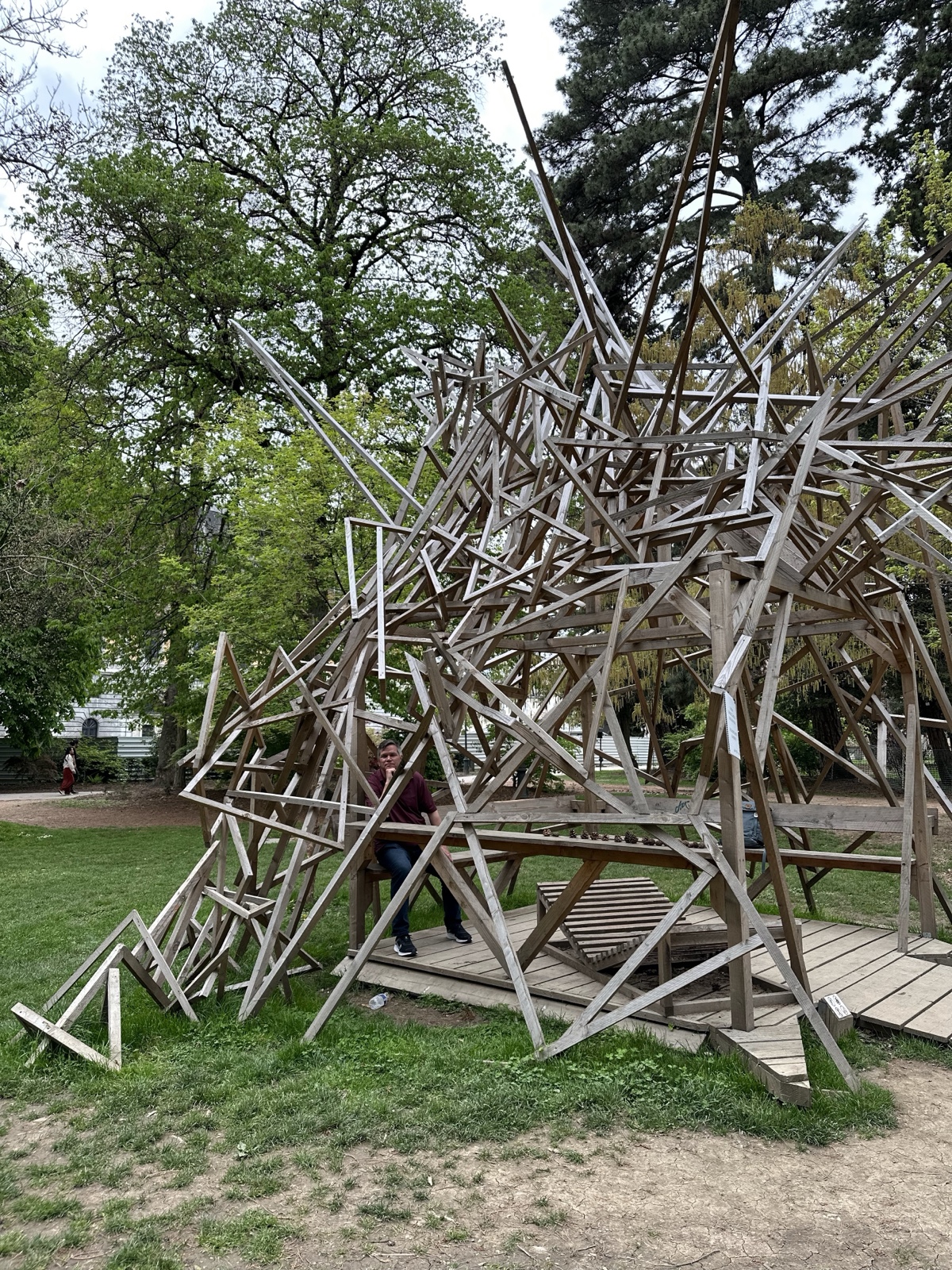 I liked this structure in the garden made out of random-angled wood.