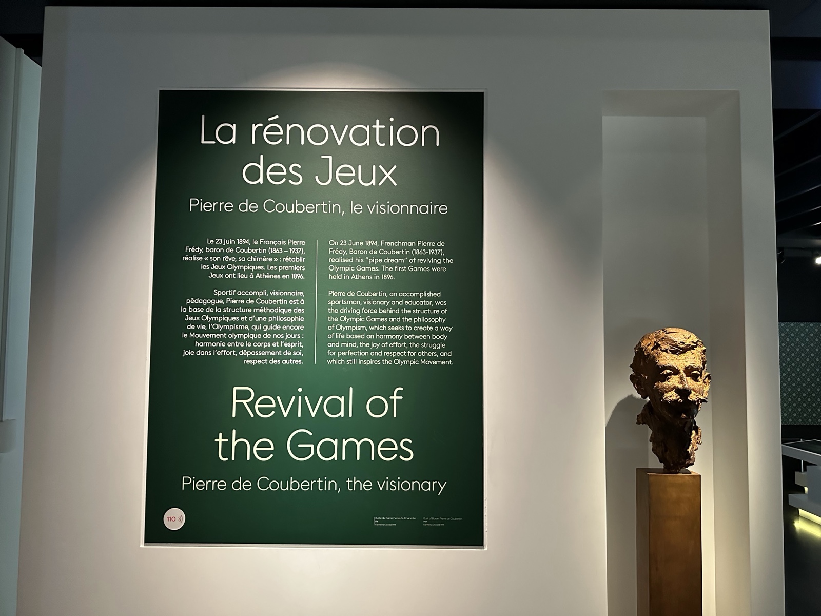 There was a lot of information about Pierre de Coubertin, a guy from France who spearheaded the revival of the Olympic Games and the associated Olympic Movement. He noticed that British schools had physical education, which gave their population something that the French seemed to lack. So Pierre worked to get that going in France as well, and thought the revival of the ancient Greek Olympic Games would be just the thing to get people's attention.