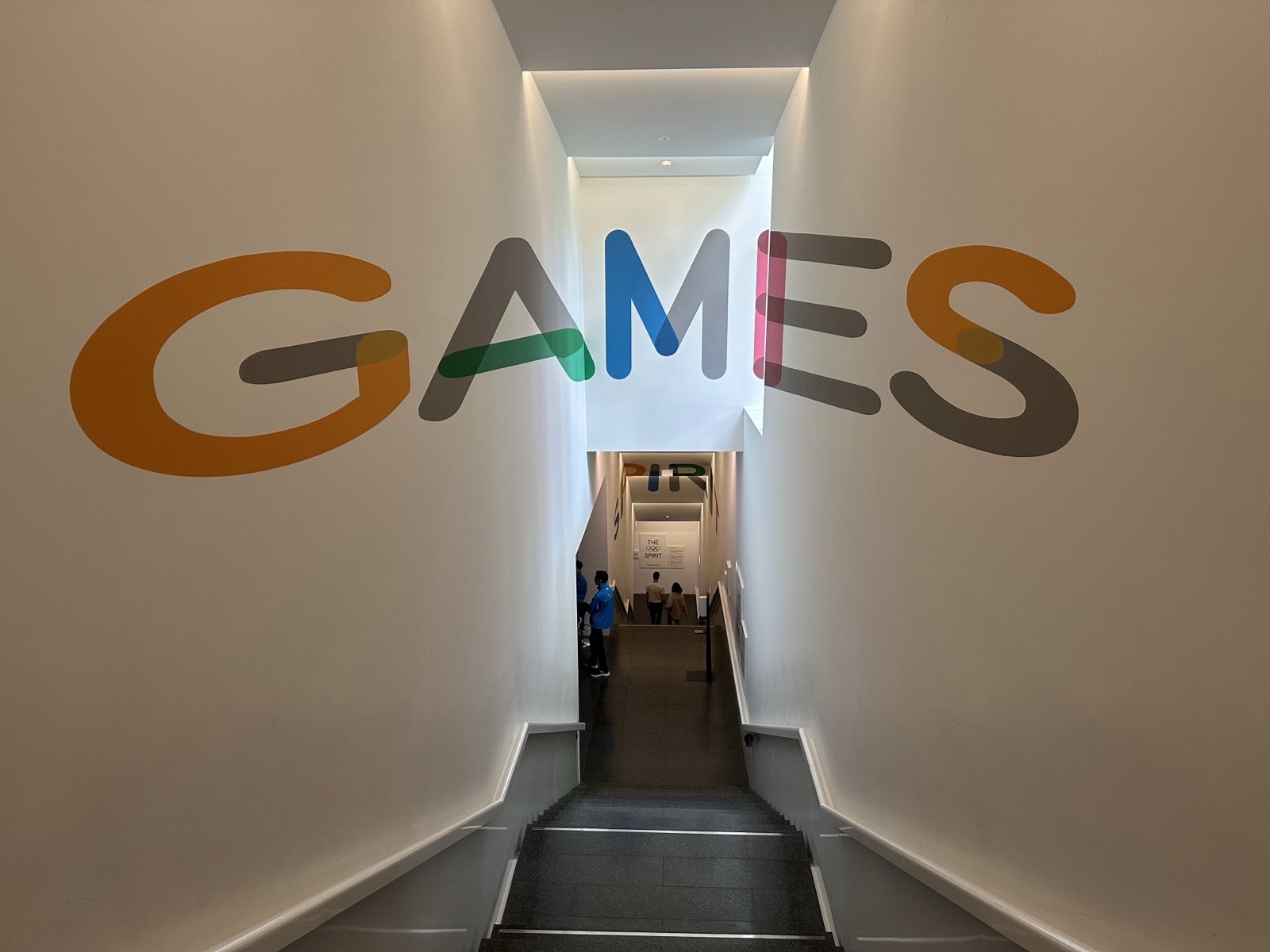 The passageway to the next floor down indicated that we would be learning about the games of the Olympics.
