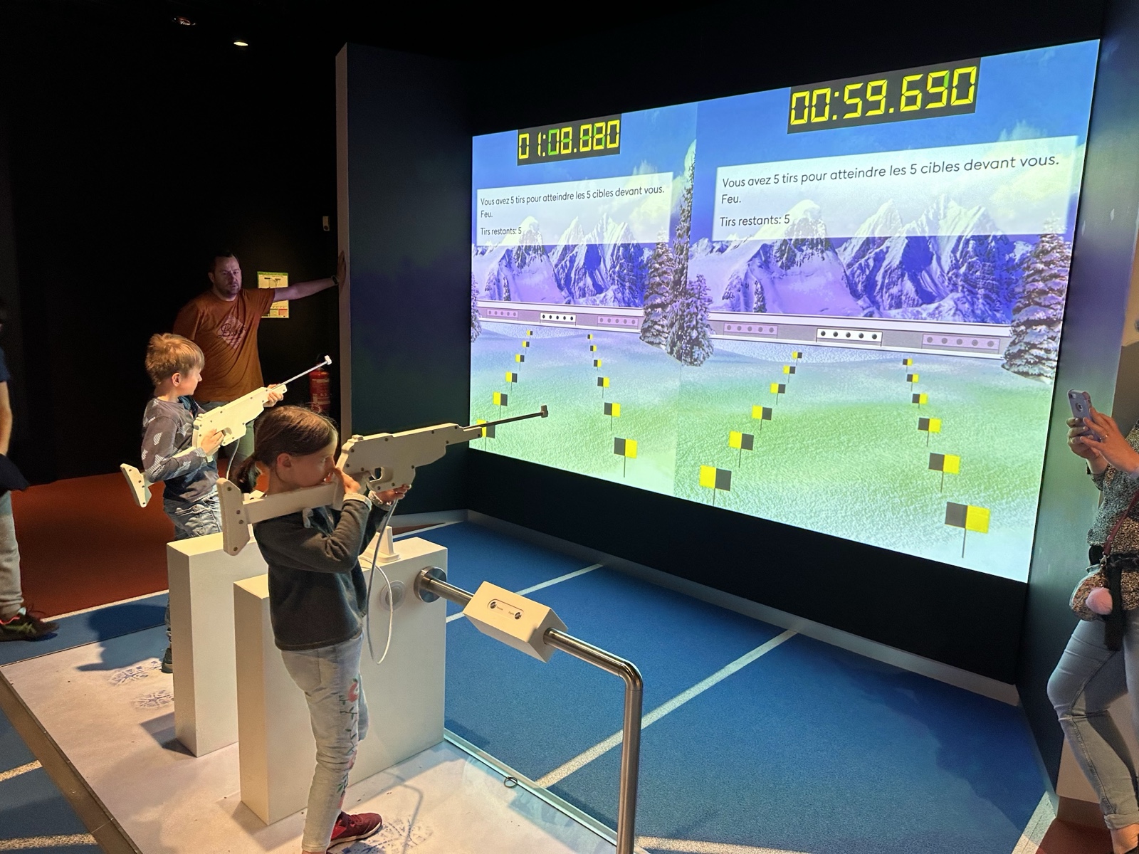There were activities where you could run and then shoot in a biathlon; or try your balance on a ski simulator.