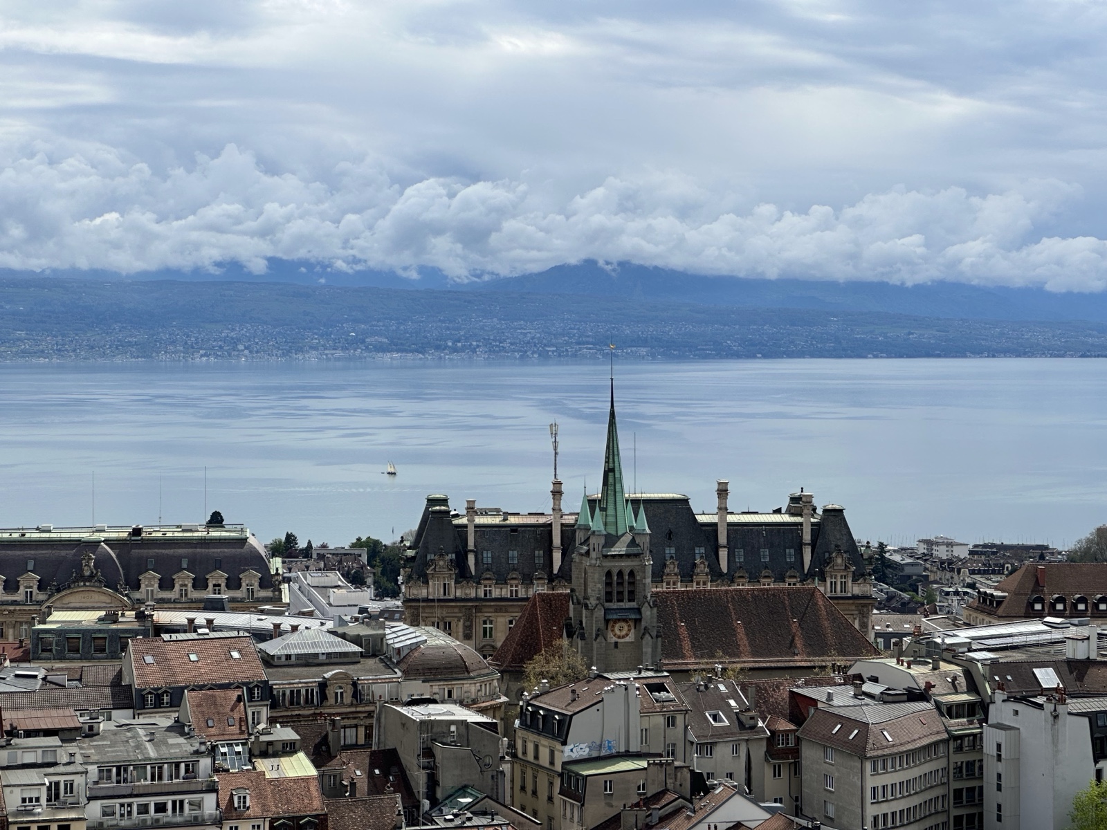 From the first landing, there was a great view of Lausanne and Geneva Lake.