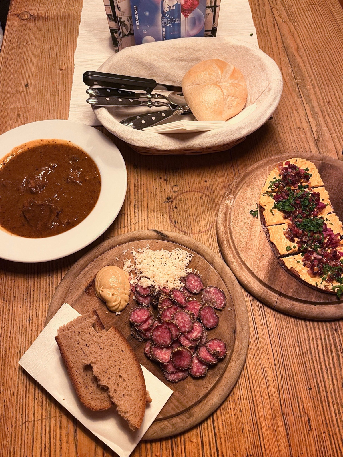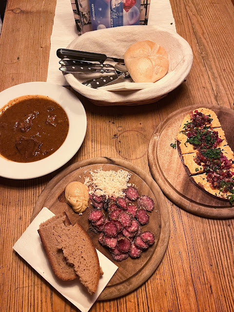 We didn't really know what to order, but the guy helping us gave us some suggestions, and we ended up with some goulash, bread, and sausages. It was different from anything we'd ever had, but pretty tasty overall.
