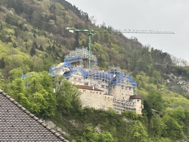 We drove up the hill to see the Vaduz Castle, which is the official residence of the Prince of Liechtenstein. We found that the entire thing was surrounded in scaffolding, so some renovations must be underway.