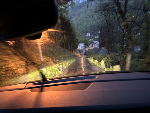We took a wrong turn and found ourselves on the narrowest of streets, with a fairly sheer drop to one side. At one point, Linette stopped to turn around. I was in the passenger seat and was looking down at the map on my phone to try to figure out where we needed to go, so I hadn't seen the wider spot in the road that everyone else saw. So to me, it looked for all the world like we were about to just drive off a cliff.
