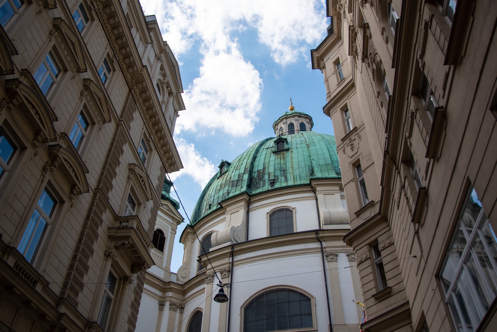The next day, we accidentally slept from 10:30 pm to 12:00 pm the next day, but after feeling refreshed, we went out to explore Vienna. This is the church dedicated to St. Francis of Assisi in Mexico Plaza.