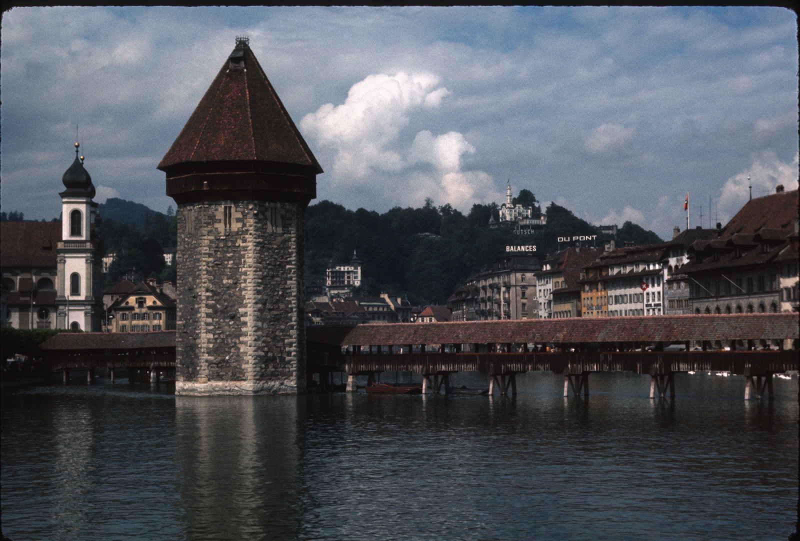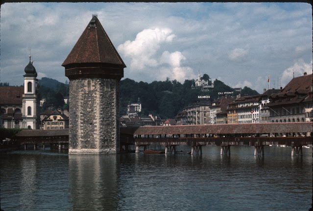 My grandpa Malcolm Hendricks Merrill traveled all over the world in his work in public health with the World Health Organization. He often went to the WHO headquarters in Geneva, Switzerland, and apparently made it to Lucerne on at least one occasion. Here is a picture of the bridge that he took in May, 1971. (This would have been before the 1993 fire and subsequent restoration).