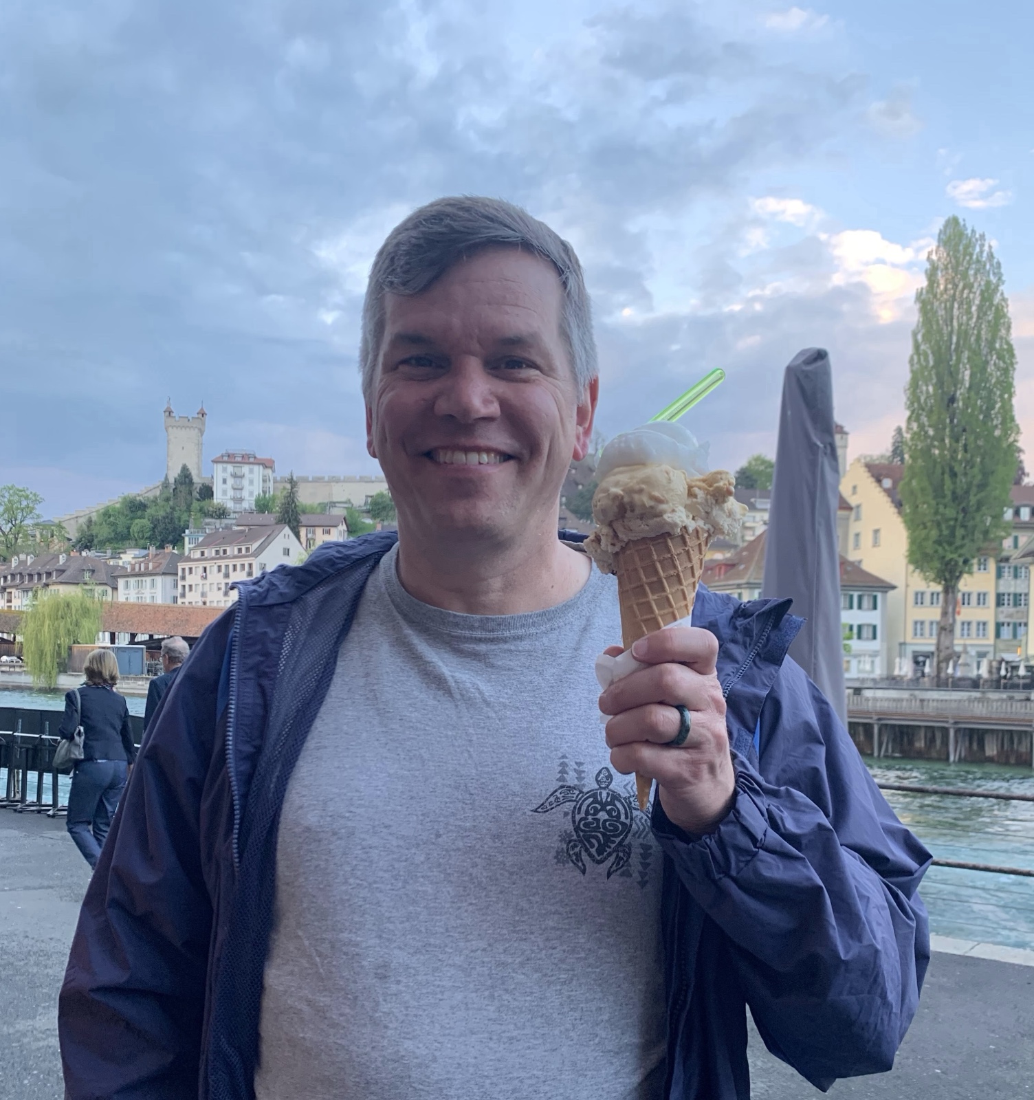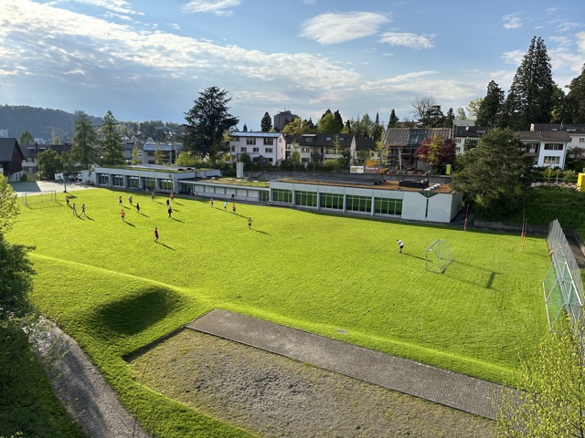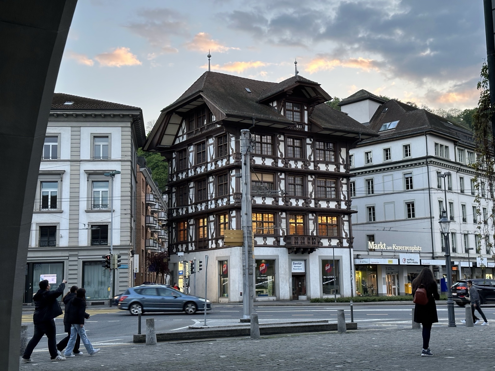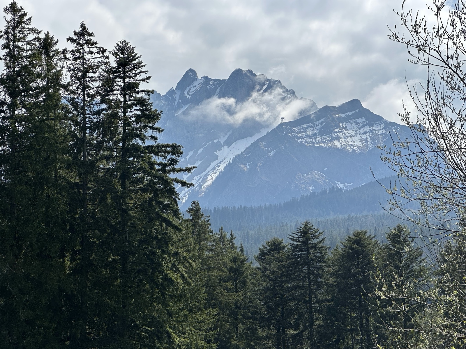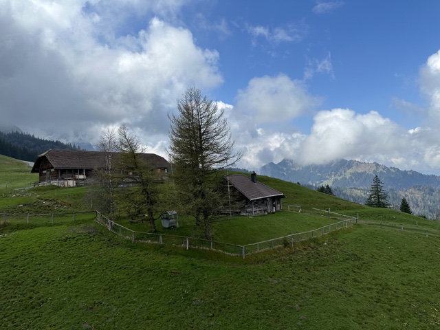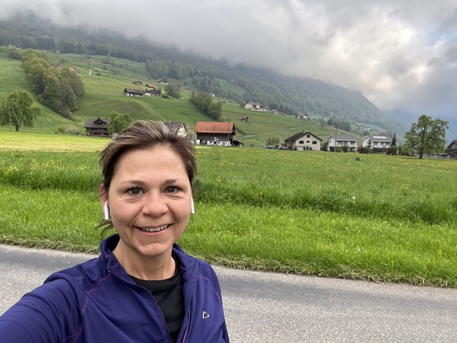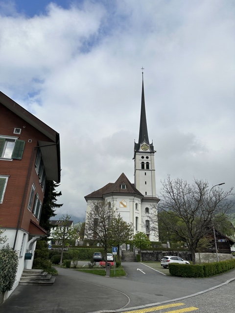 On May 2, 2023, we awoke at our AirBnB in Alpnach, just a few minutes south of Lucerne, and found that we had a nice view off of our balcony of some pretty green hills dotted with houses.