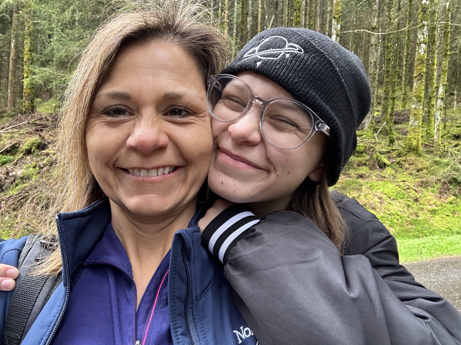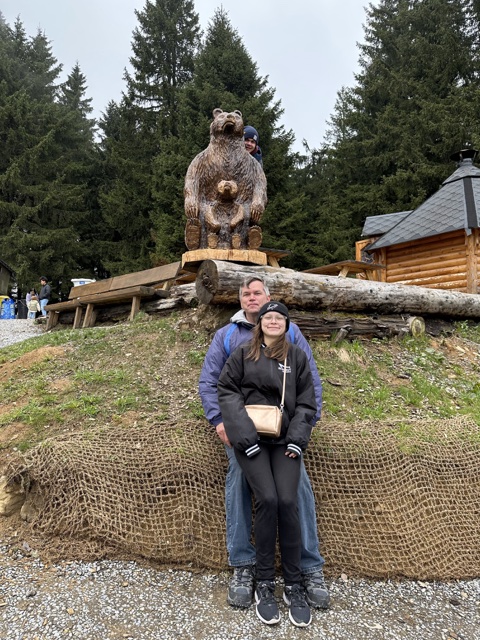 Sienna and I posed like the papa bear & baby bear carving. (Oh, and hi, Jared!)