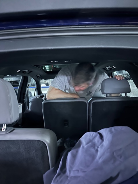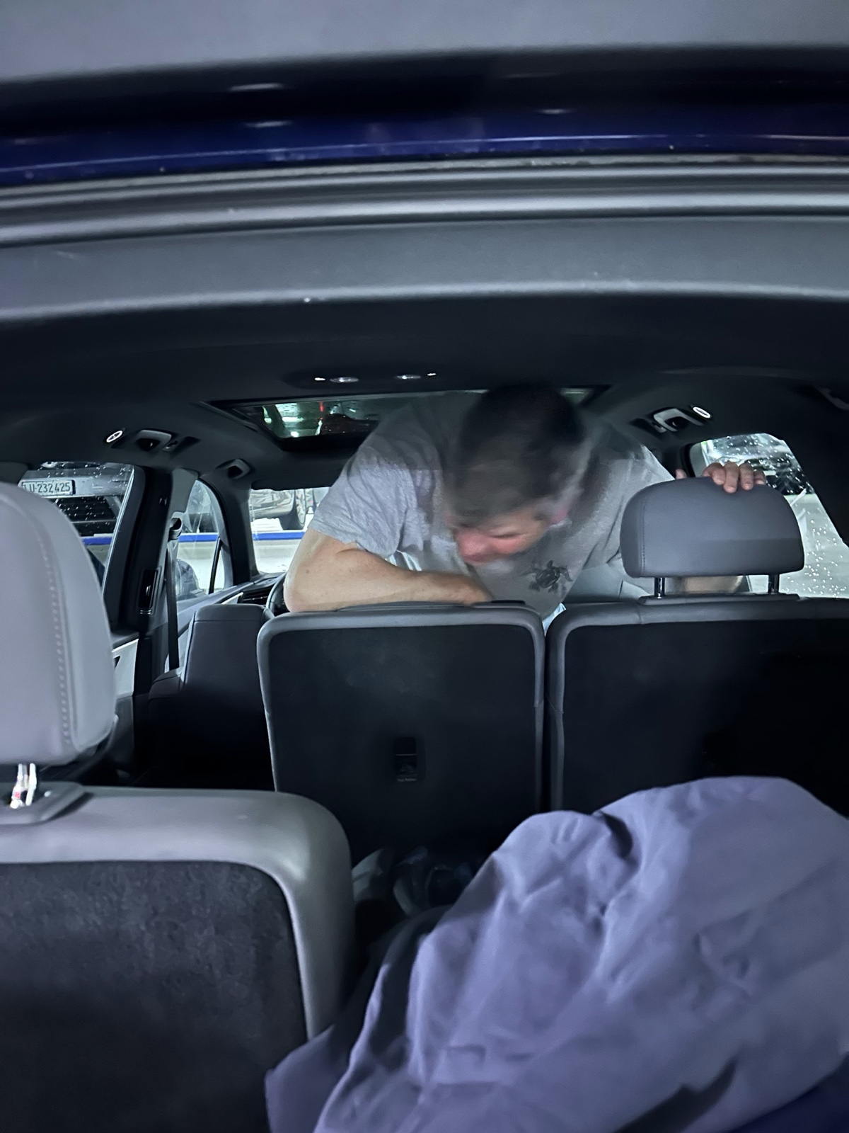 Here's a 20-second video clip if you want to see me squirm out of the car while everyone laughs.