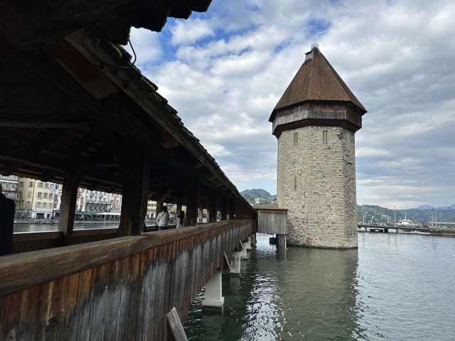 We walked across the Chapel Bridge (Kapellbrücke), which is the oldest covered bridge in Europe. It was originally built about 1365.
