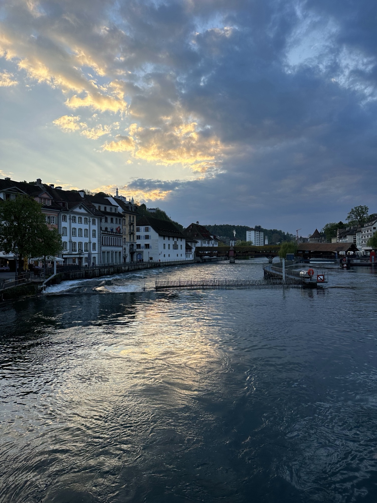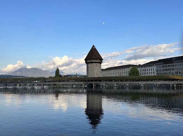 The Chapel Bridge looked cool in the evening. The moon was a nice touch.