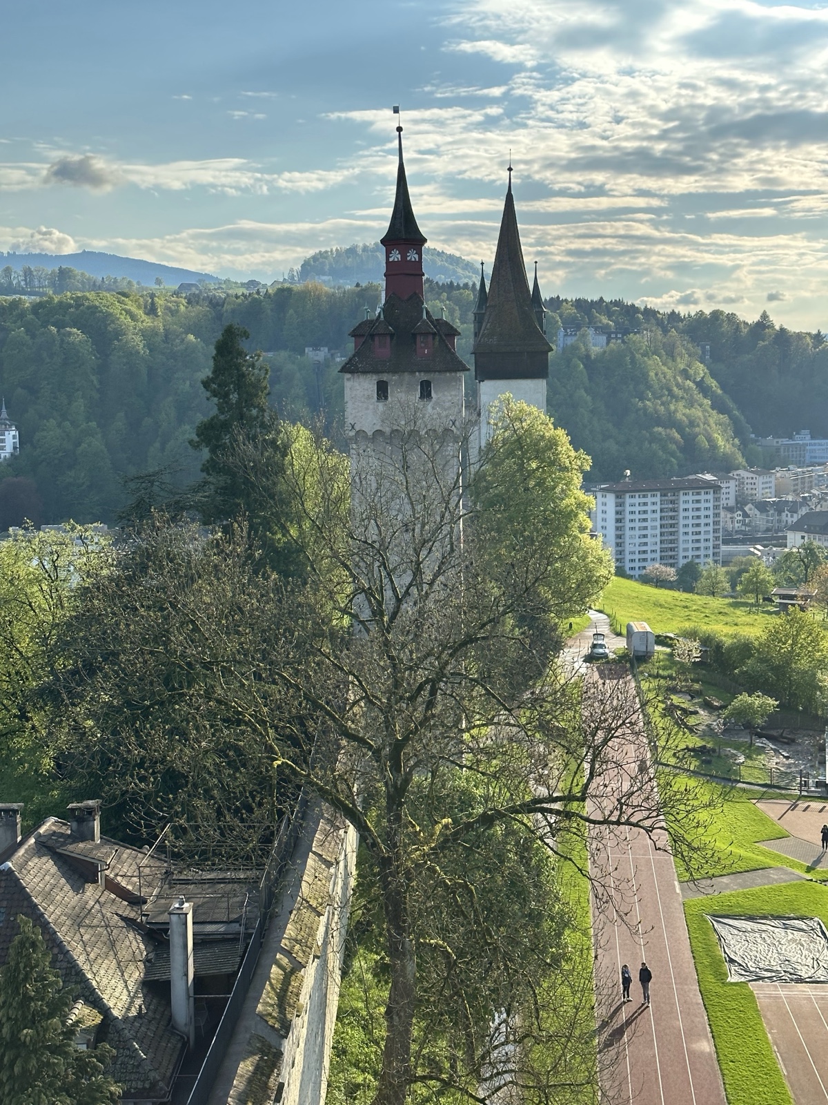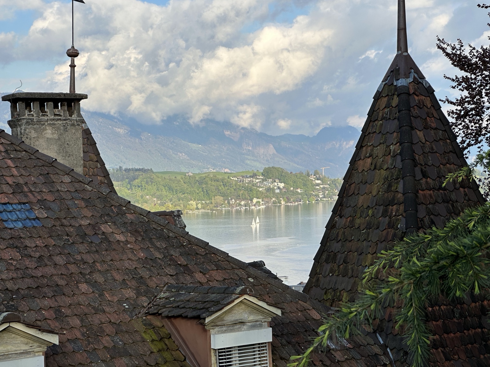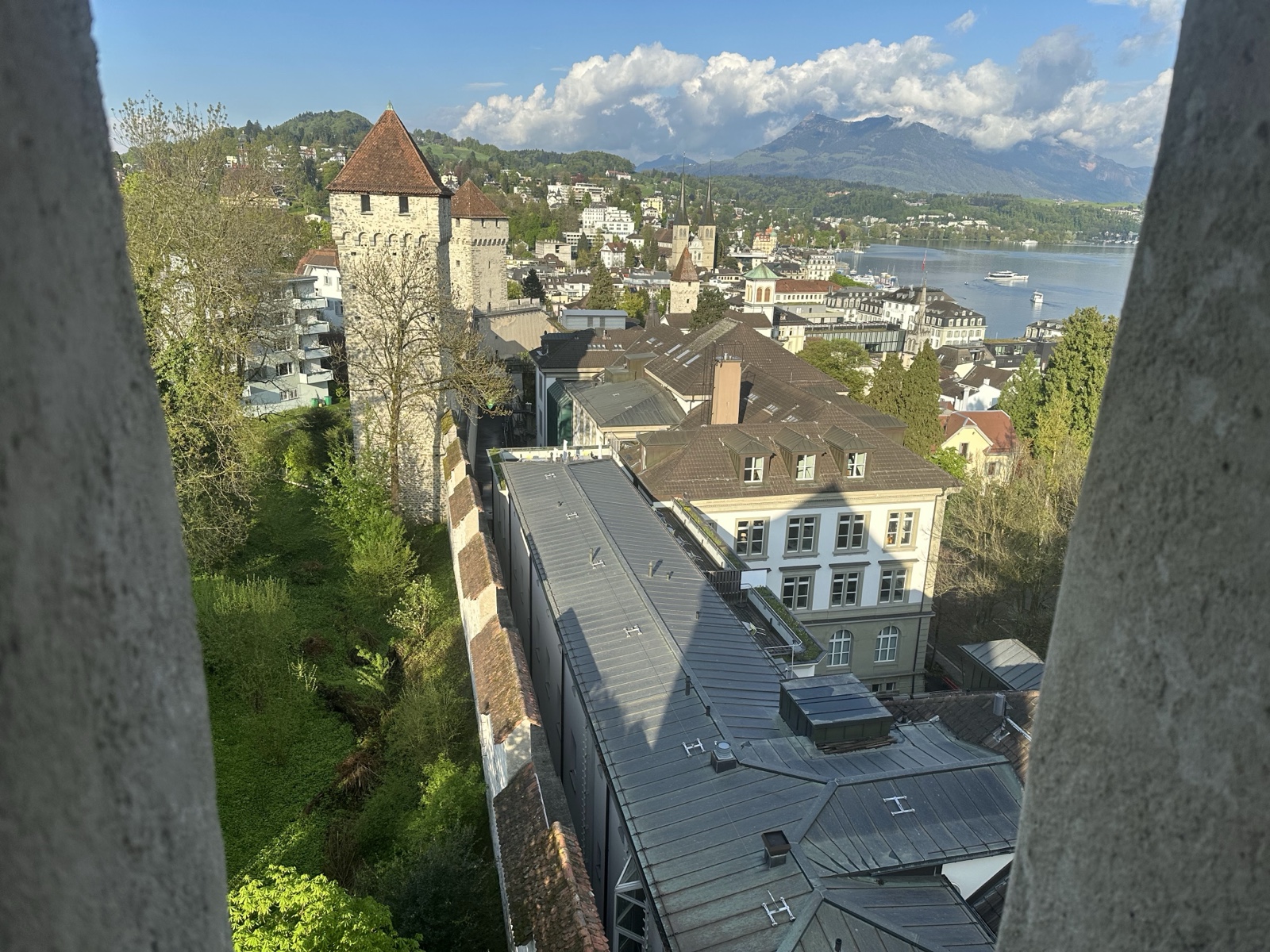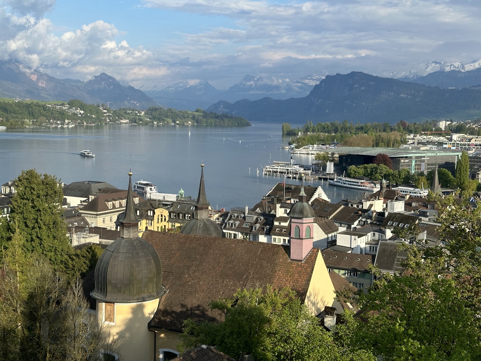 It was indeed a nice view, with churches in the foreground and Lake Lucerne and the Swiss Alps in the background.