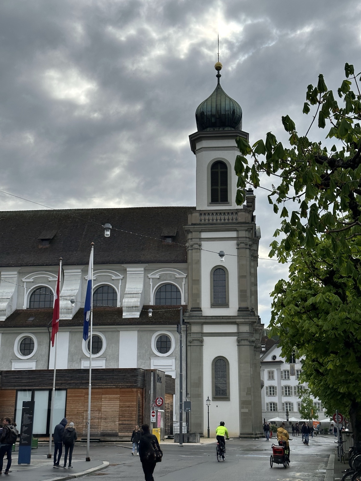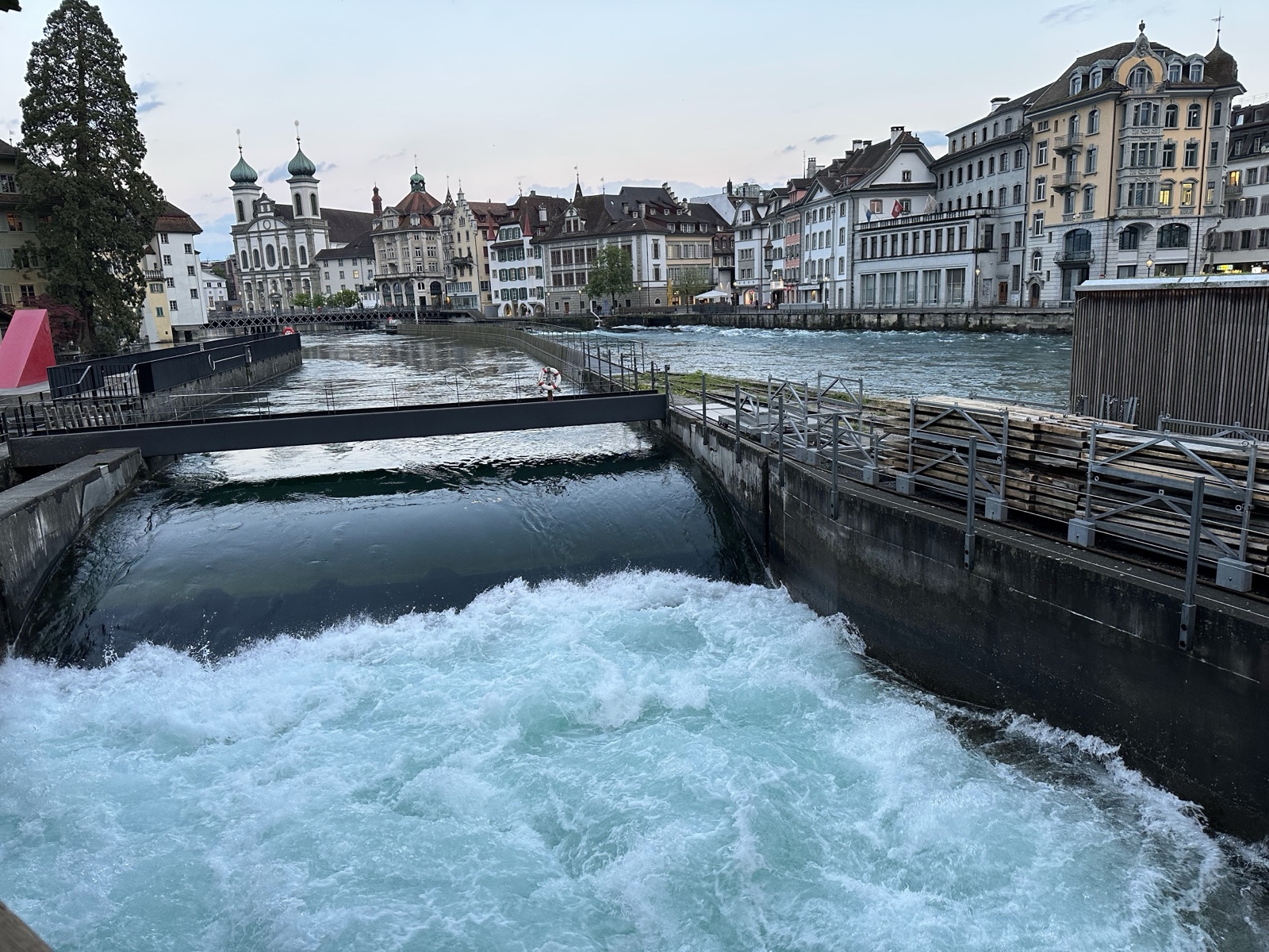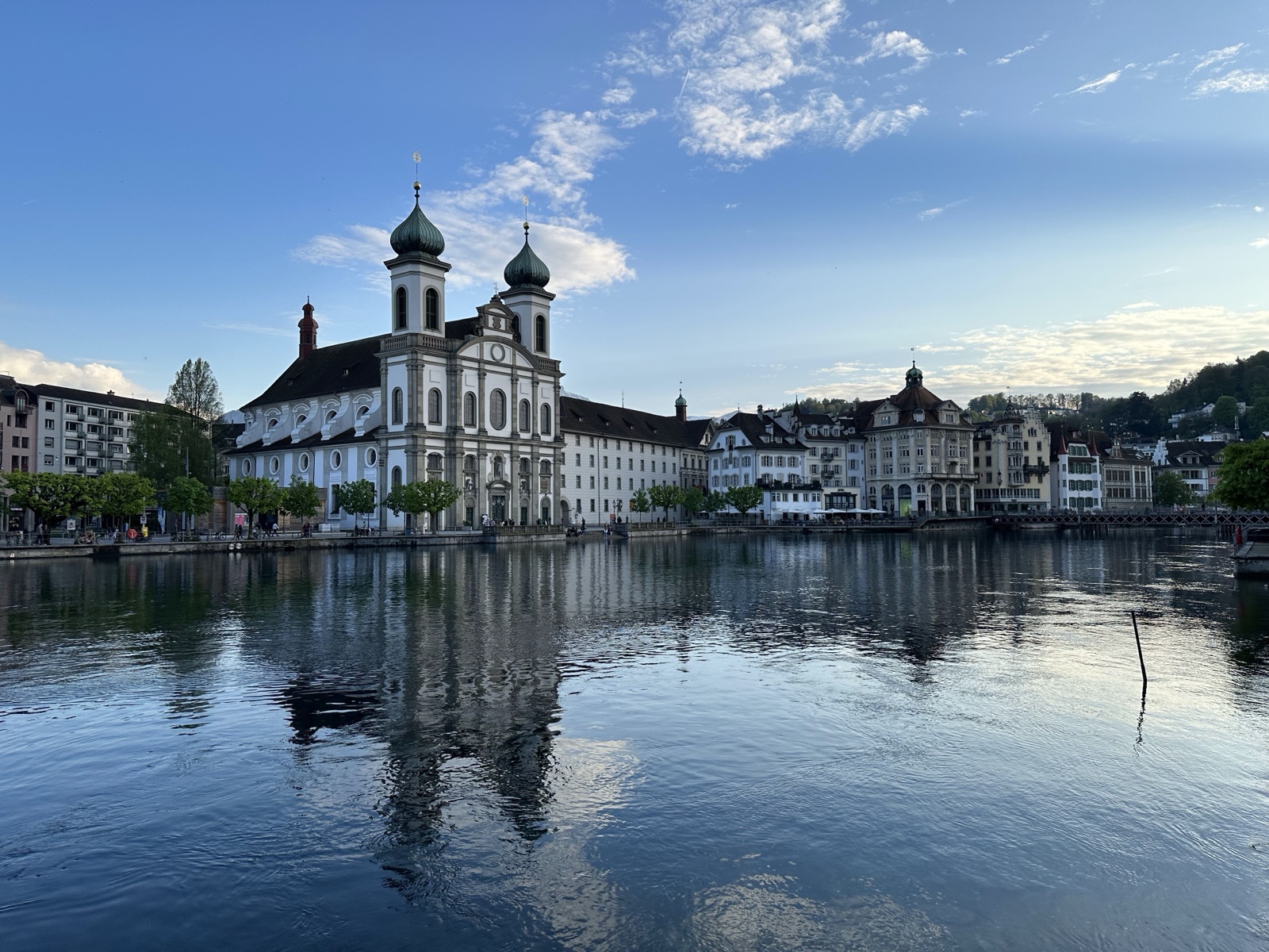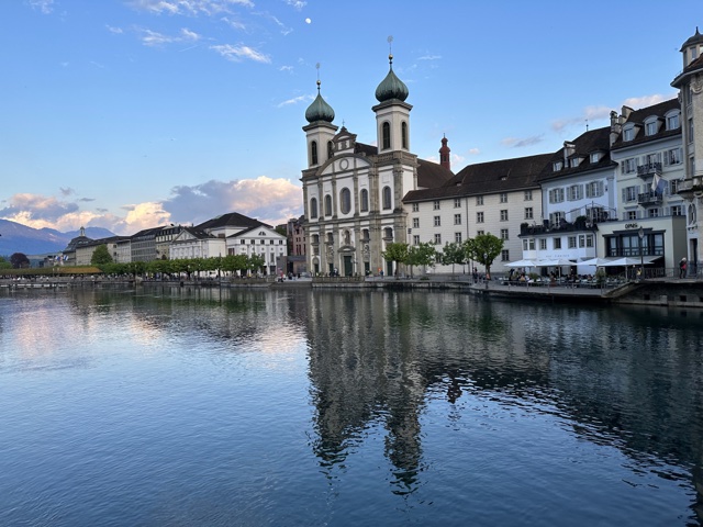 It was indeed a nice view, with churches in the foreground and Lake Lucerne and the Swiss Alps in the background.
