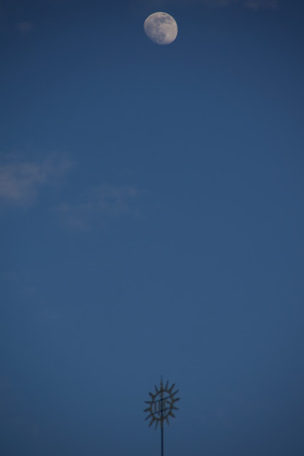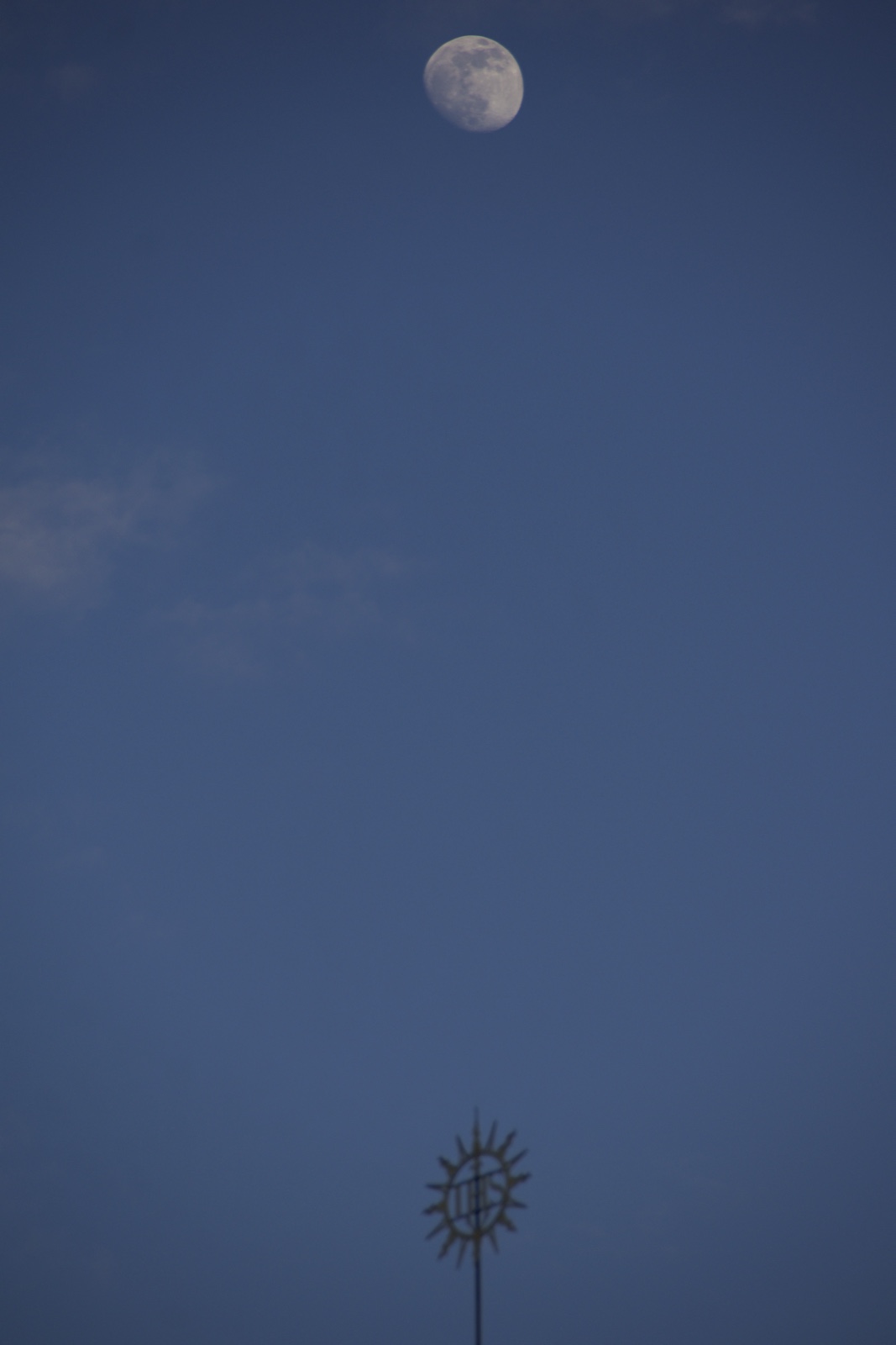 Jared zoomed way in on the moon above the tip of the church for this shot of the moon.