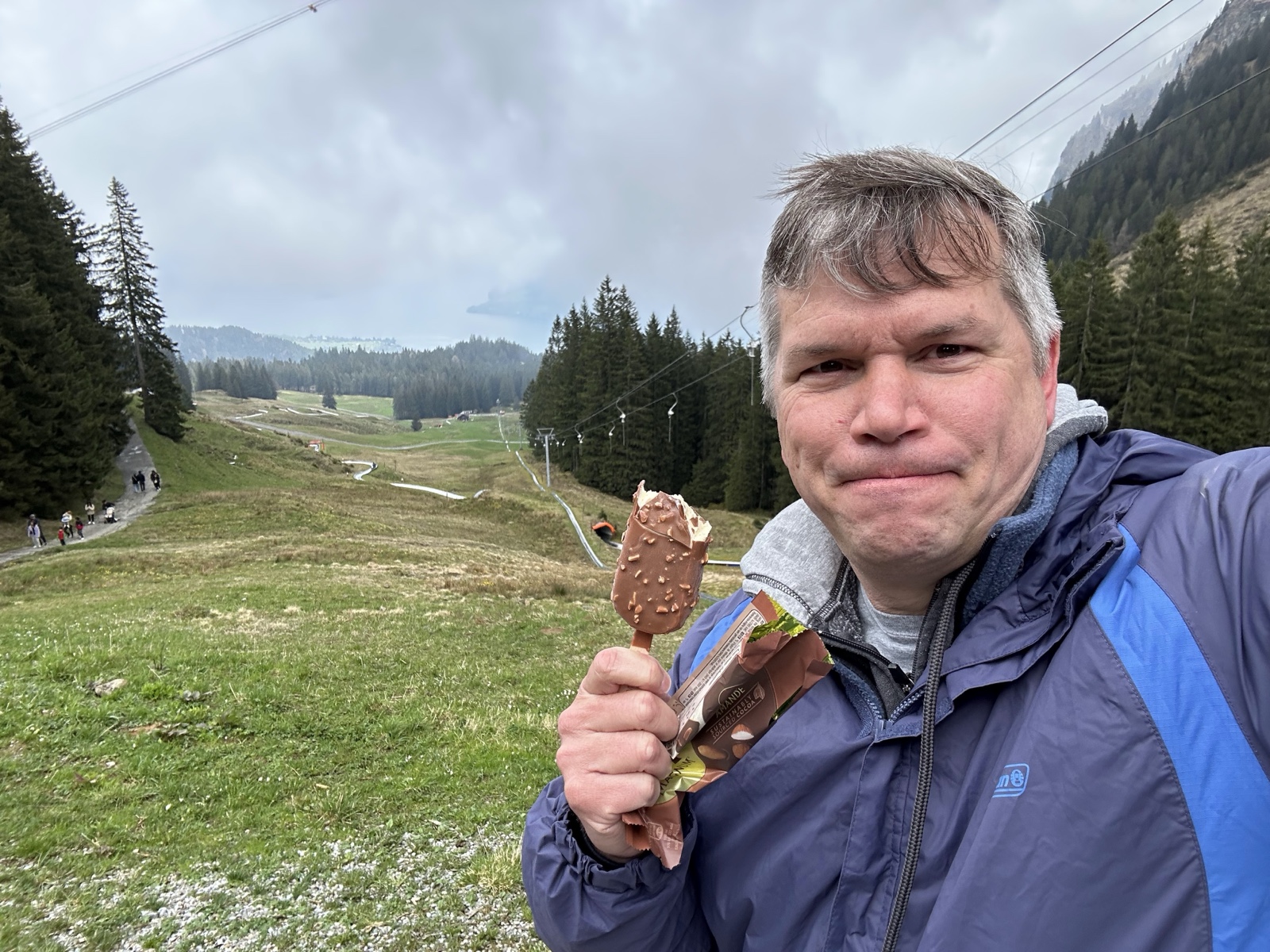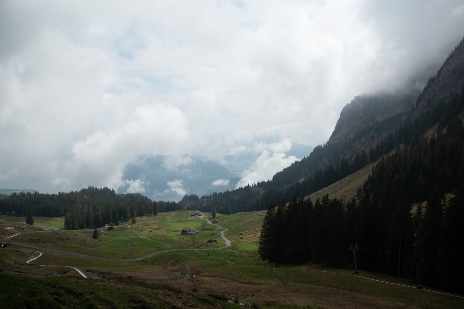 Here's a four-minute video, showing the girls heading off on the toboggans, and then my ride, with a couple little surprises along the way. It ends with a time lapse of the ride back up, with a little traditional Swiss music to keep you company.