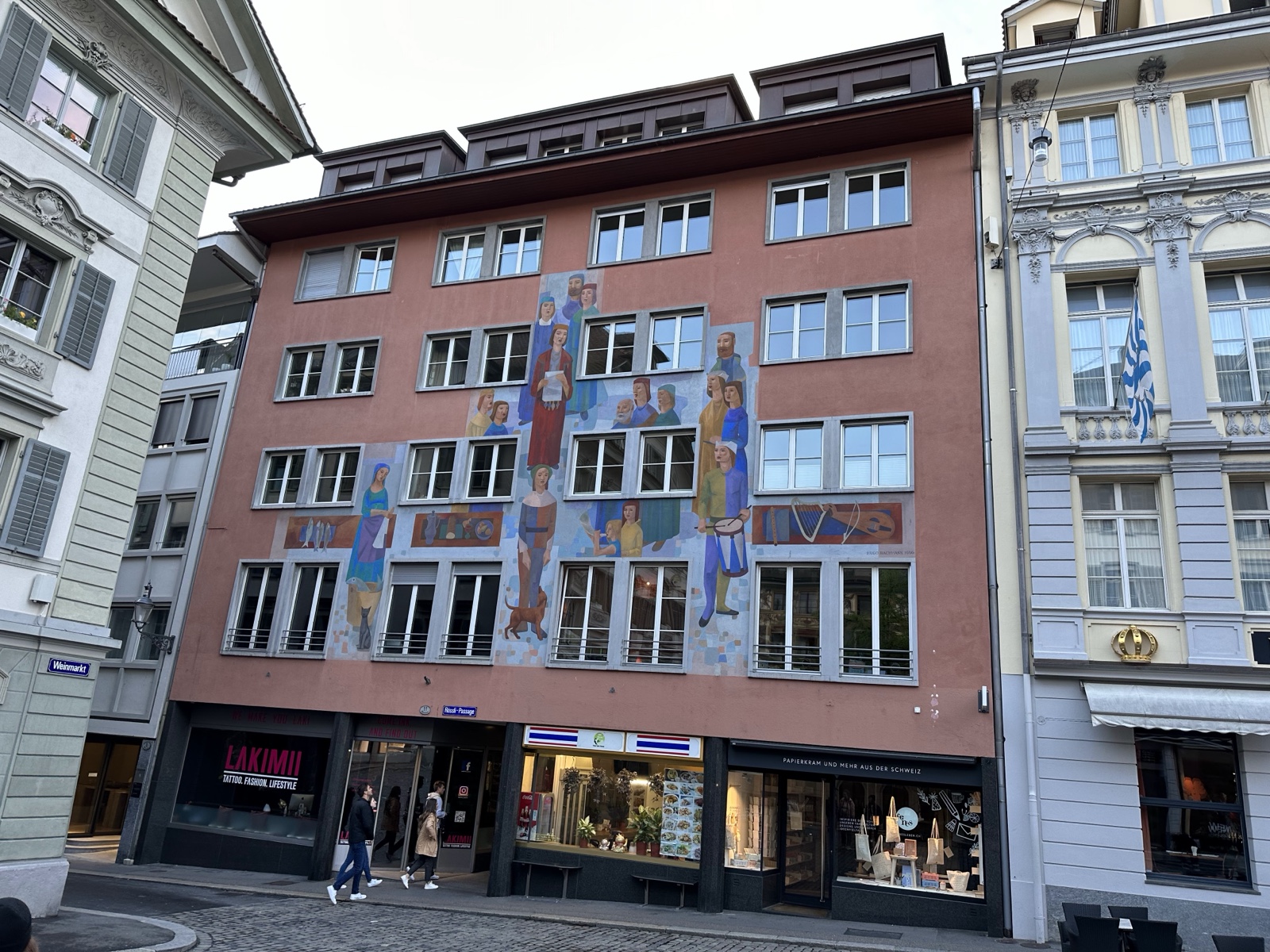After crossing the bridge, we saw this building with fun decorations painted all over.