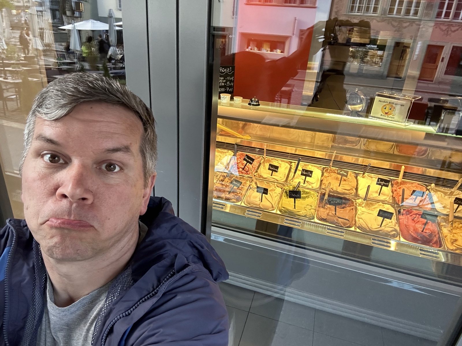 I was desperately trying to find gelato somewhere. I finally found a place with a nice-looking selection, but alas, it was closed. That seemed really sad.