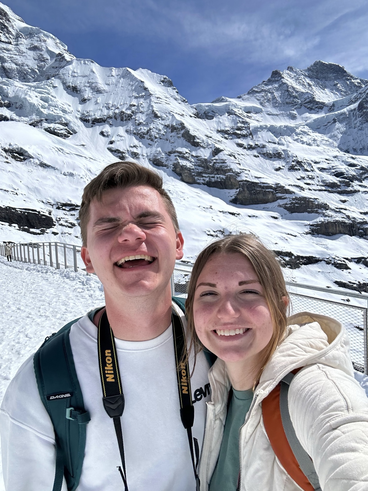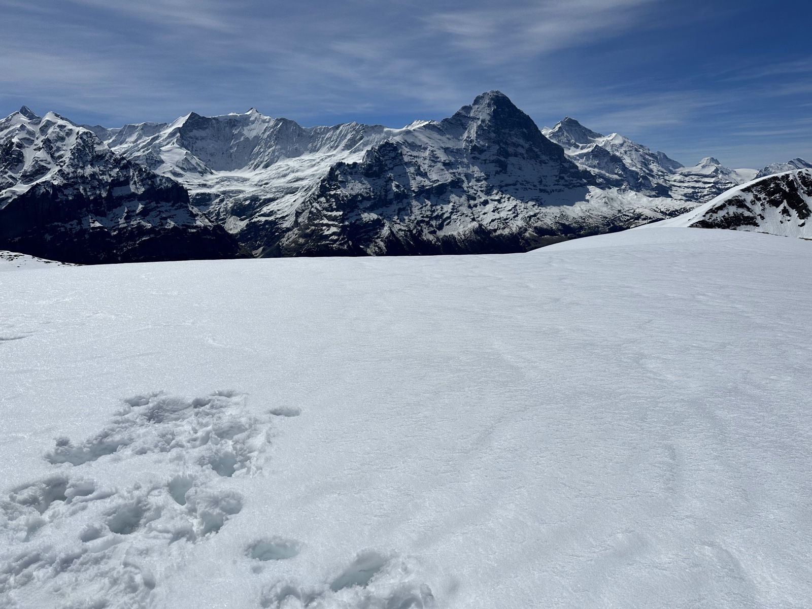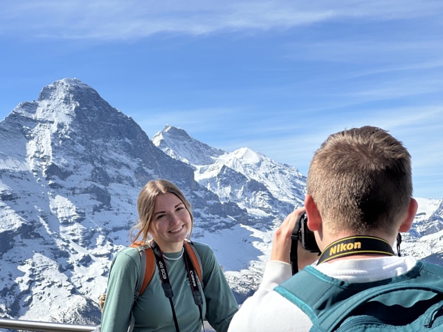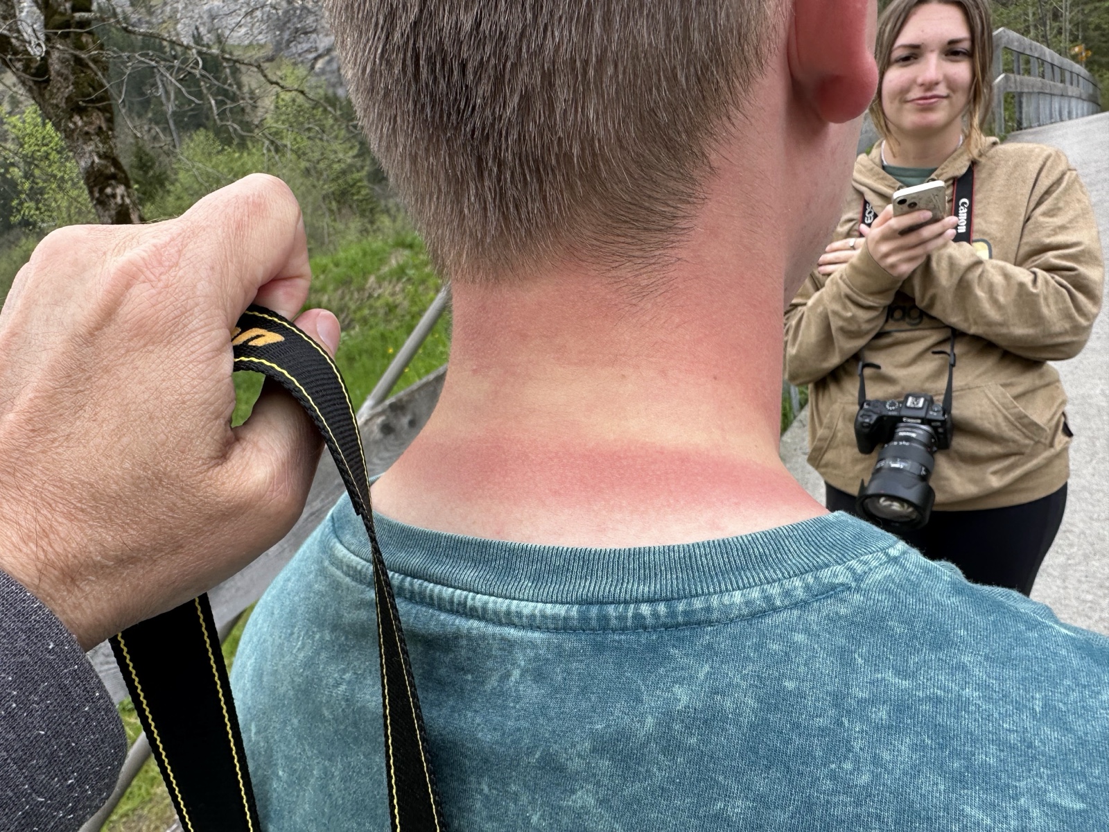 Apparently the glaring sun and reflective snow at Grindelwald-First took its toll on Jared that day. You can see where his camera strap protected him from sunburn.
