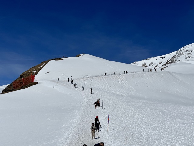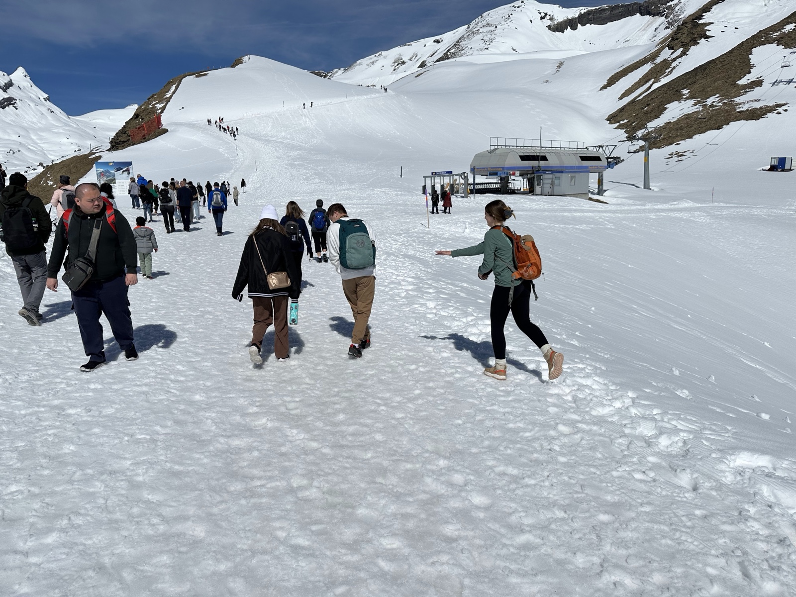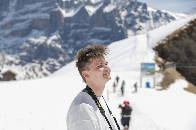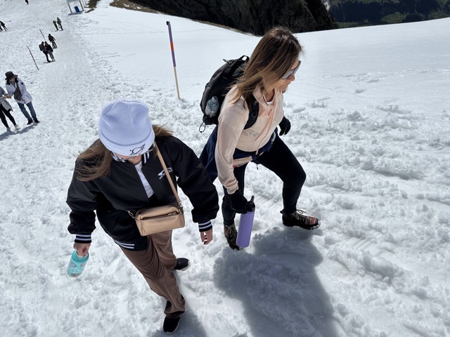 So...we took a gondola from the green valley town of Grindelwald up to a snowy area called "First" or "Grindelwald-First".