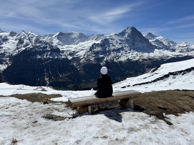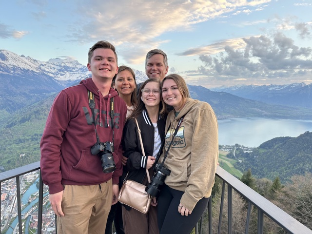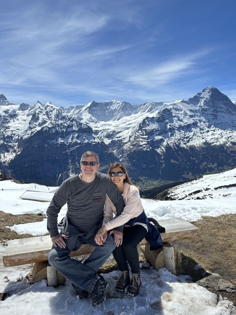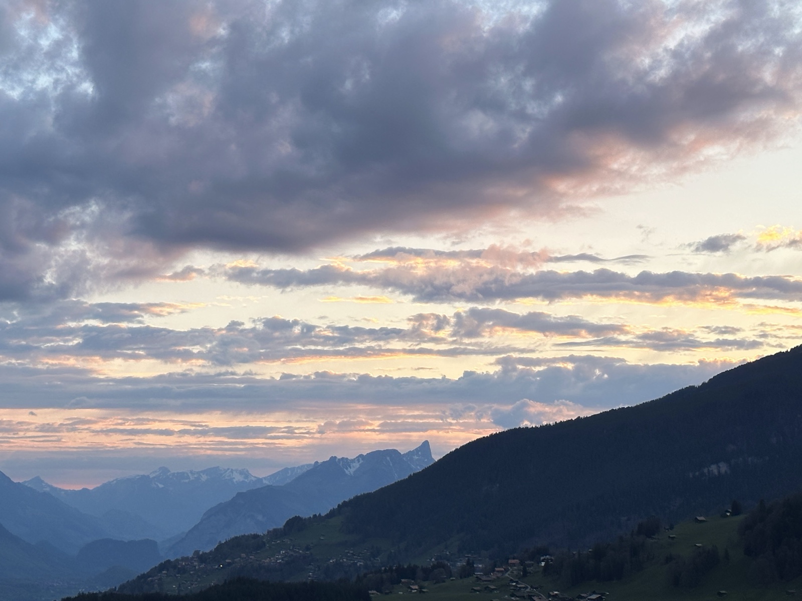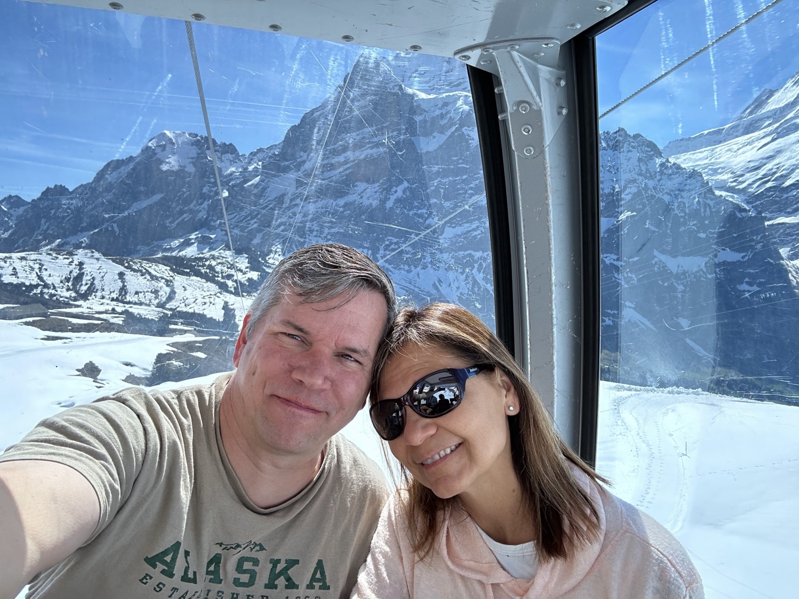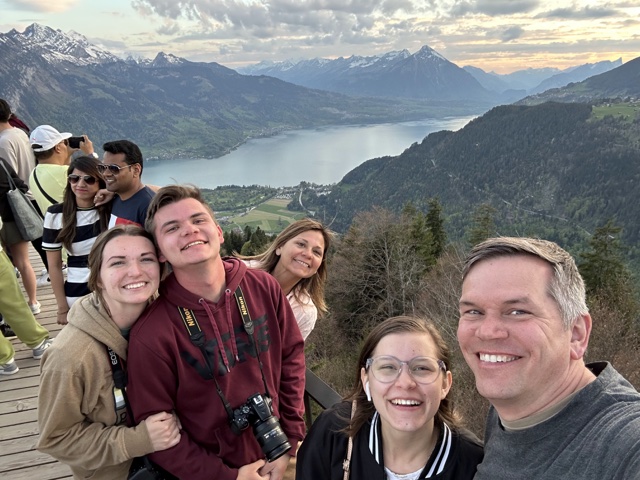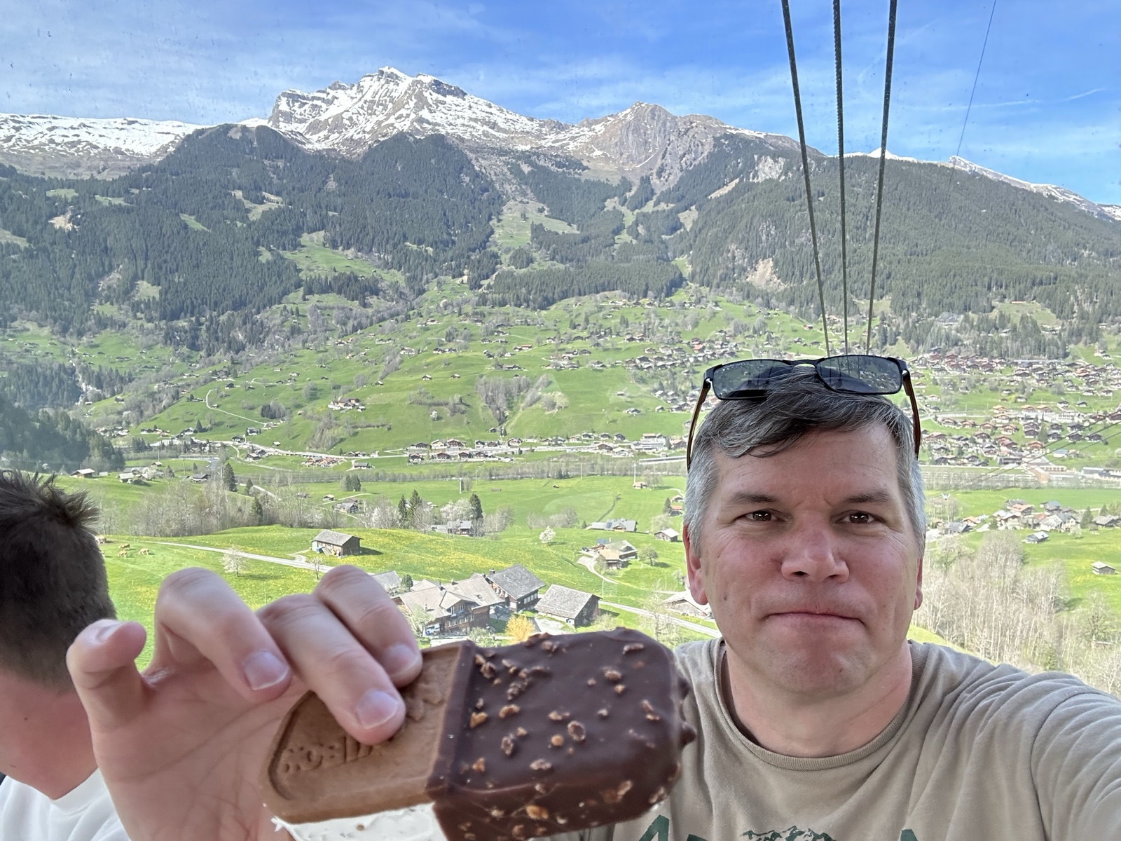 On May 4, 2023, we awoke at our AirBnB in Ringgenberg, near Interlaken. Linette found a pretty nice spot to "gazeeb" (read scriptures in the morning, as one might do in a gazebo). There were windows surrounding the sitting room, with views of the mountains all around.