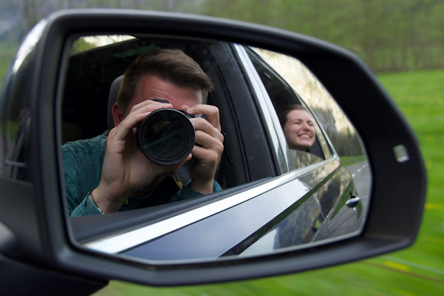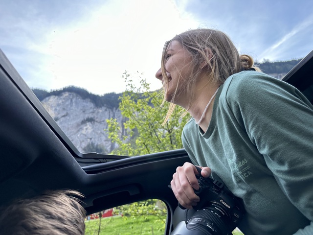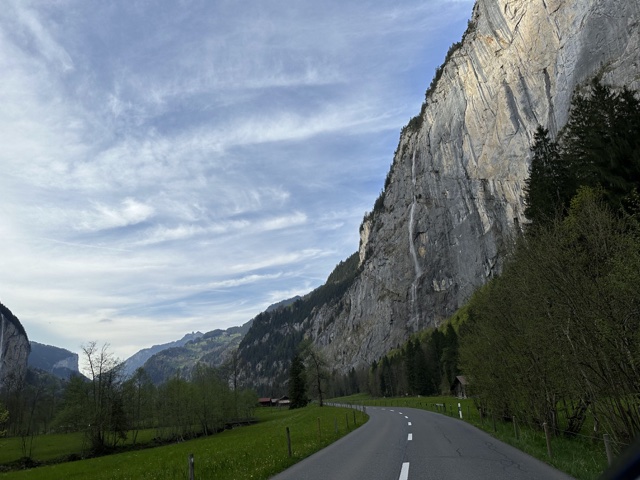 Meanwhile, the rest of us drove down the valley towards the town of Stechelberg, since we hadn't gone that far the day before. It was a beautiful evening, and Katelyn took pictures out the sunroof.