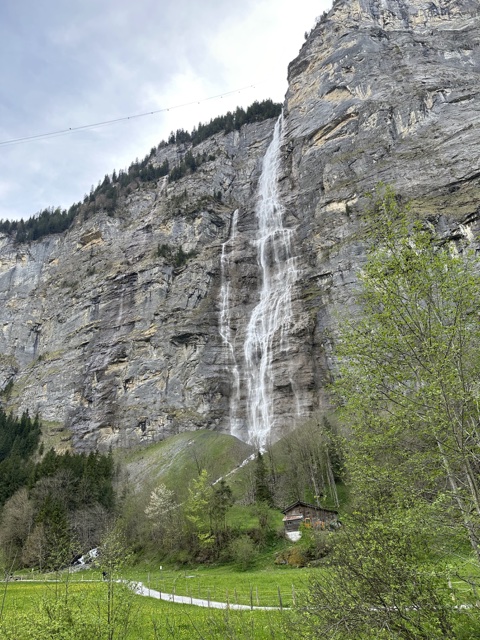 Then we approached the Mürrenbach waterfall (Mürrenbachfall). This waterfall is the tallest in Switzerland, at 417m (1,368 feet) tall!