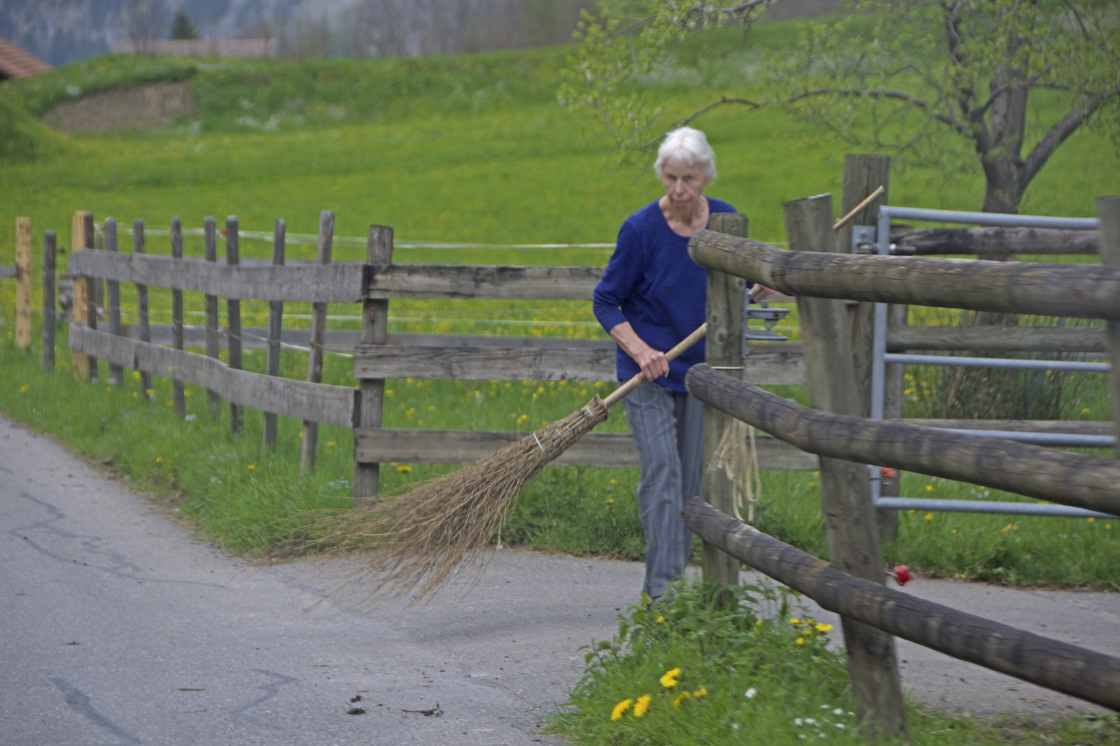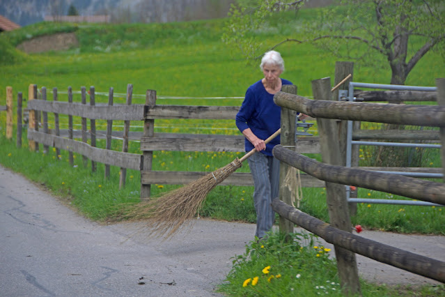 Jared captured a picture of this lady with an old-fashioned stick broom.