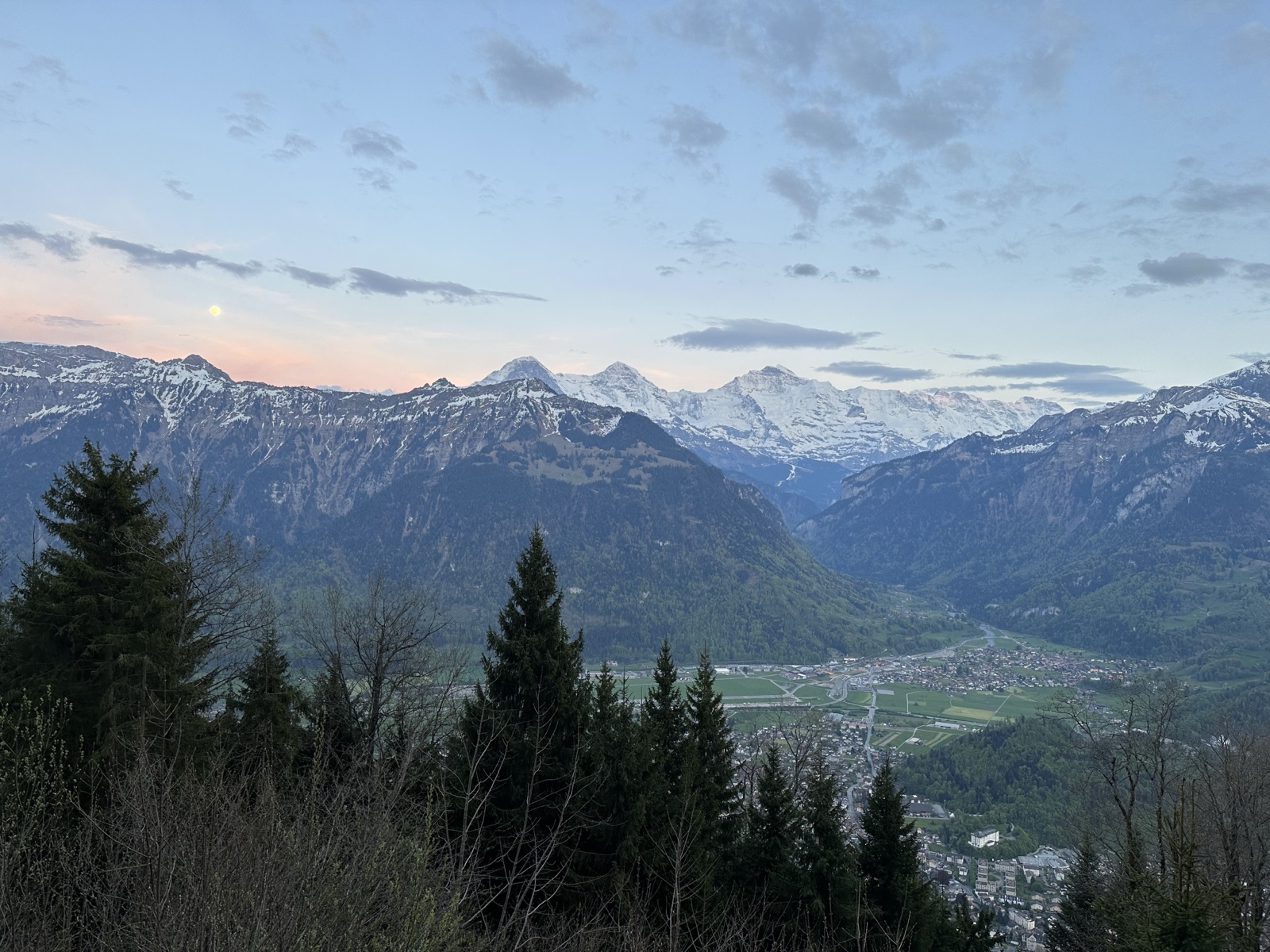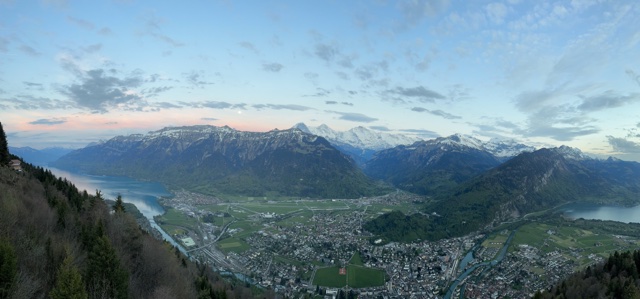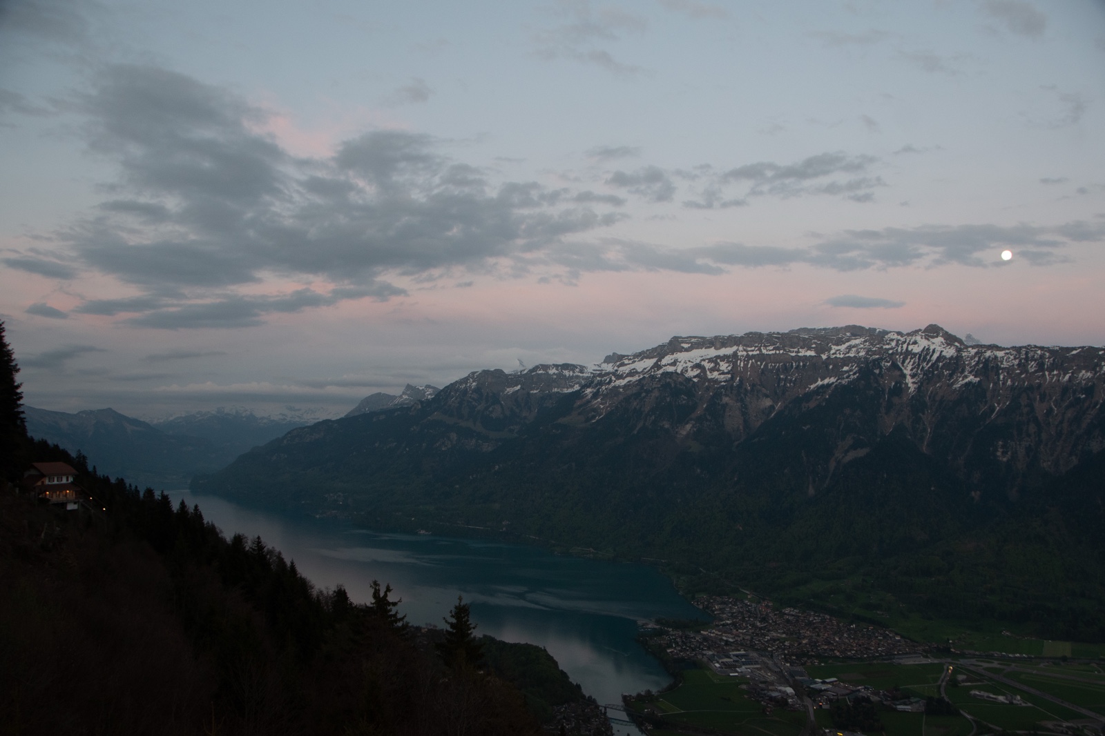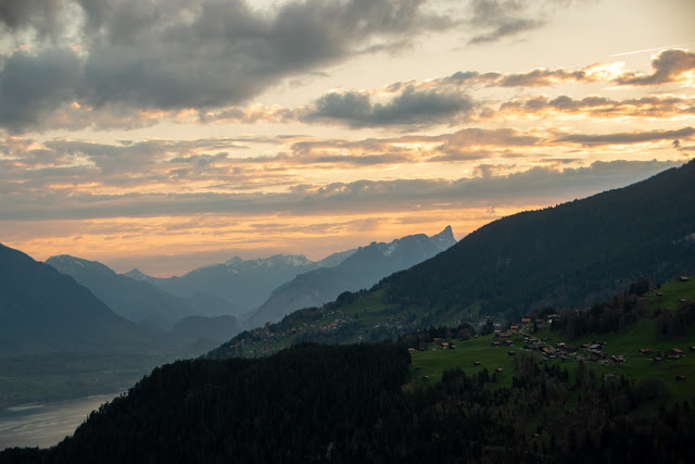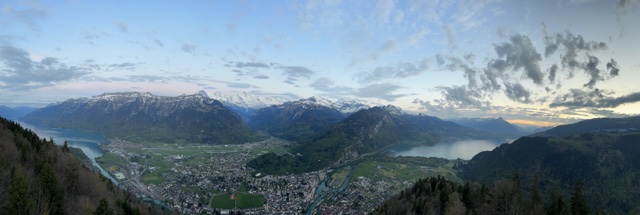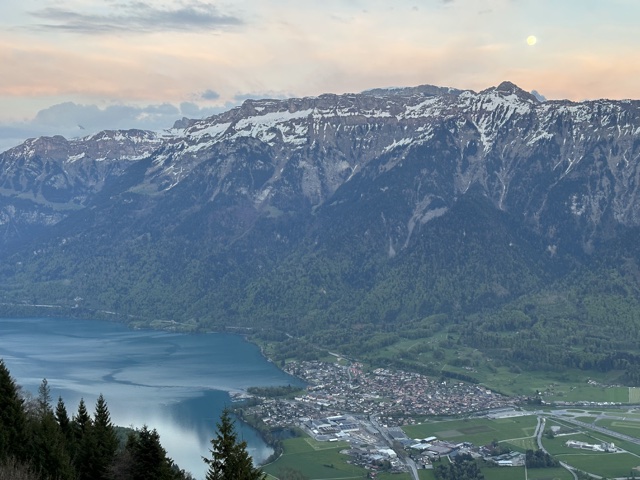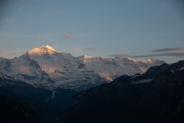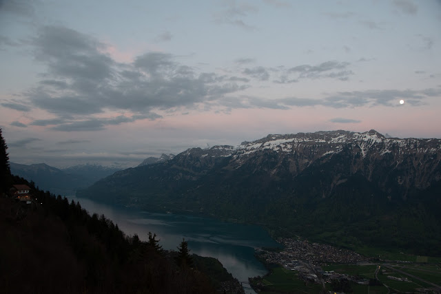 The tourist lady in Lauterbrunnen had told us that you couldn't see good sunsets in the valleys, because the mountains blocked both sides. She recommended Harder Kuln as the best place in the area for that.