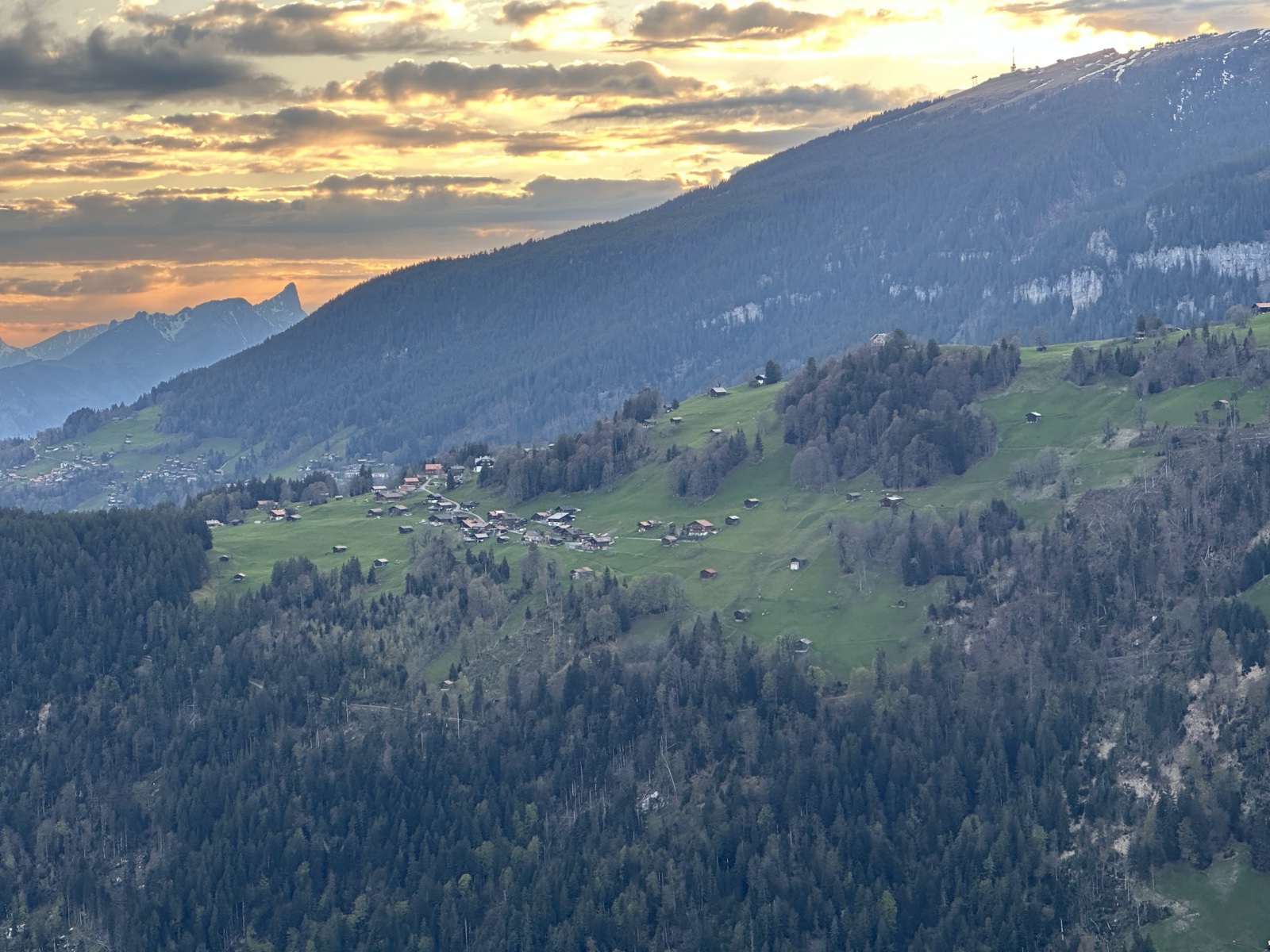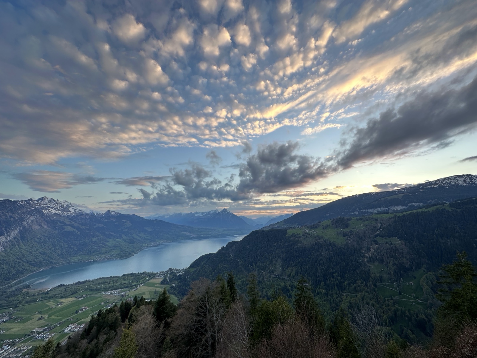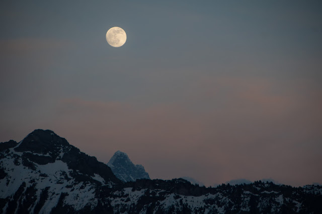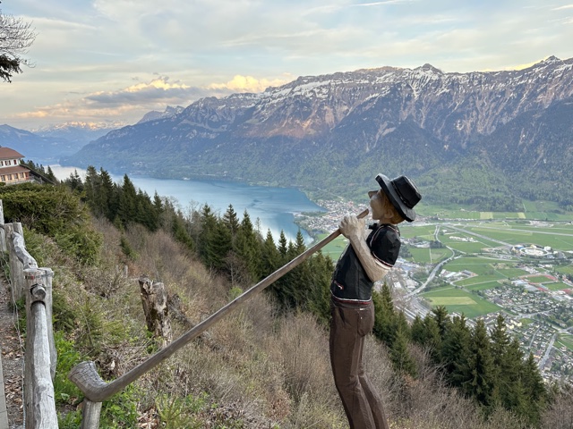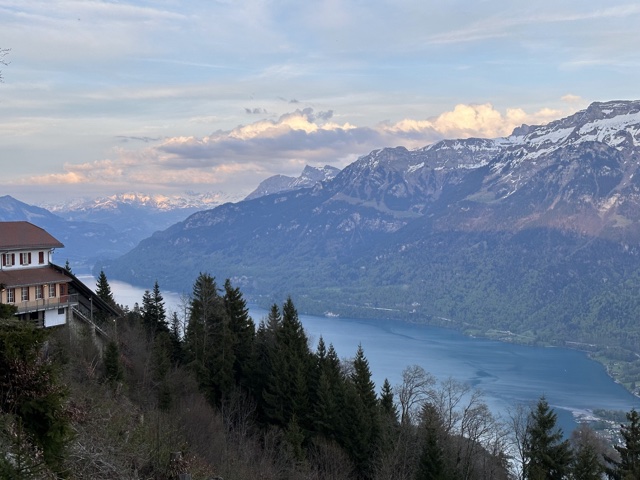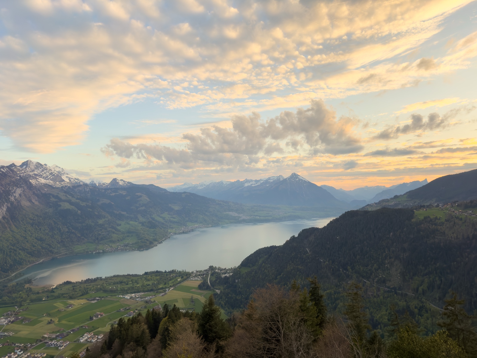 The tourist lady in Lauterbrunnen had told us that you couldn't see good sunsets in the valleys, because the mountains blocked both sides. She recommended Harder Kuln as the best place in the area for that.