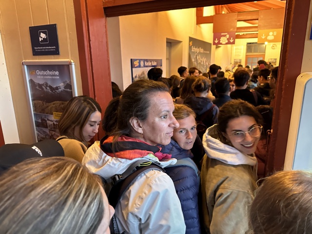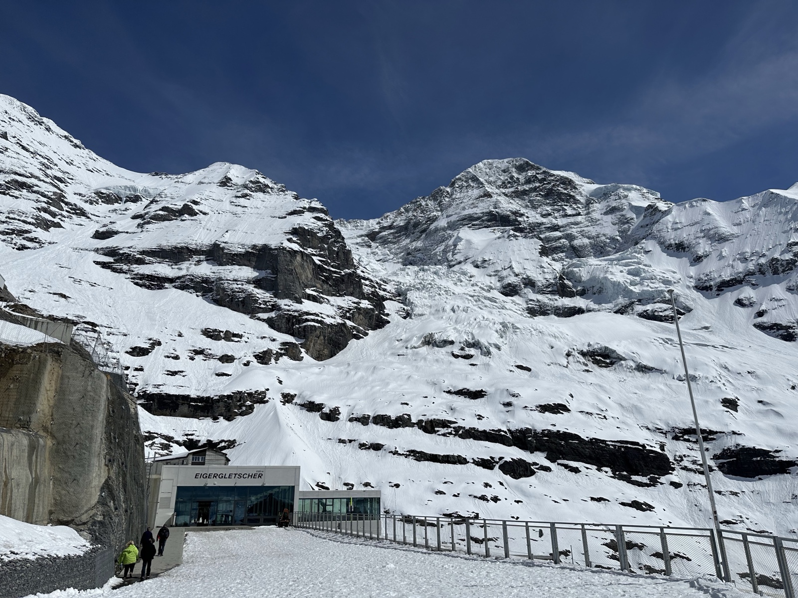 This place is where you can catch a special cogwheel train that climbs through the mountain up to Jungfraujoch ("yoong-frow-yolk"), which boasts the highest railway station in Europe. However, it would have cost an extra $60, even with our pass, to go up there, and it was sold out that day anyway.